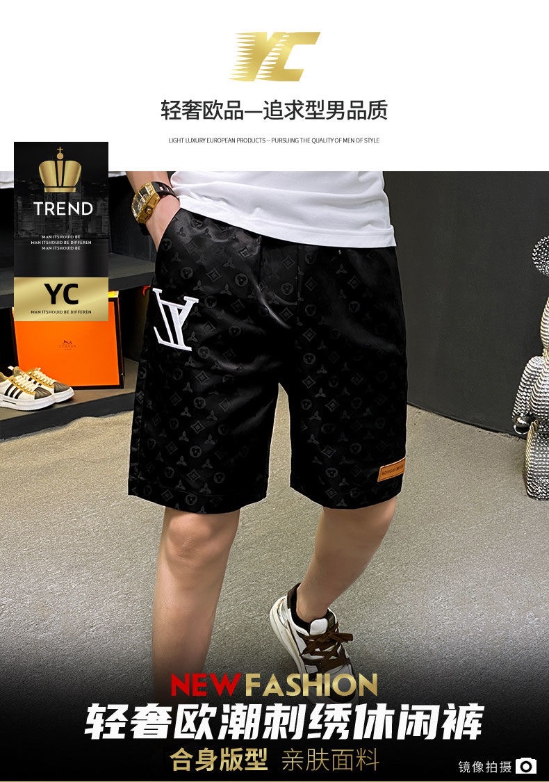 高級アルファベット刺繍半ズボン男性潮牌2024新型夏カジュアルズボン速乾直筒五分ズボン男