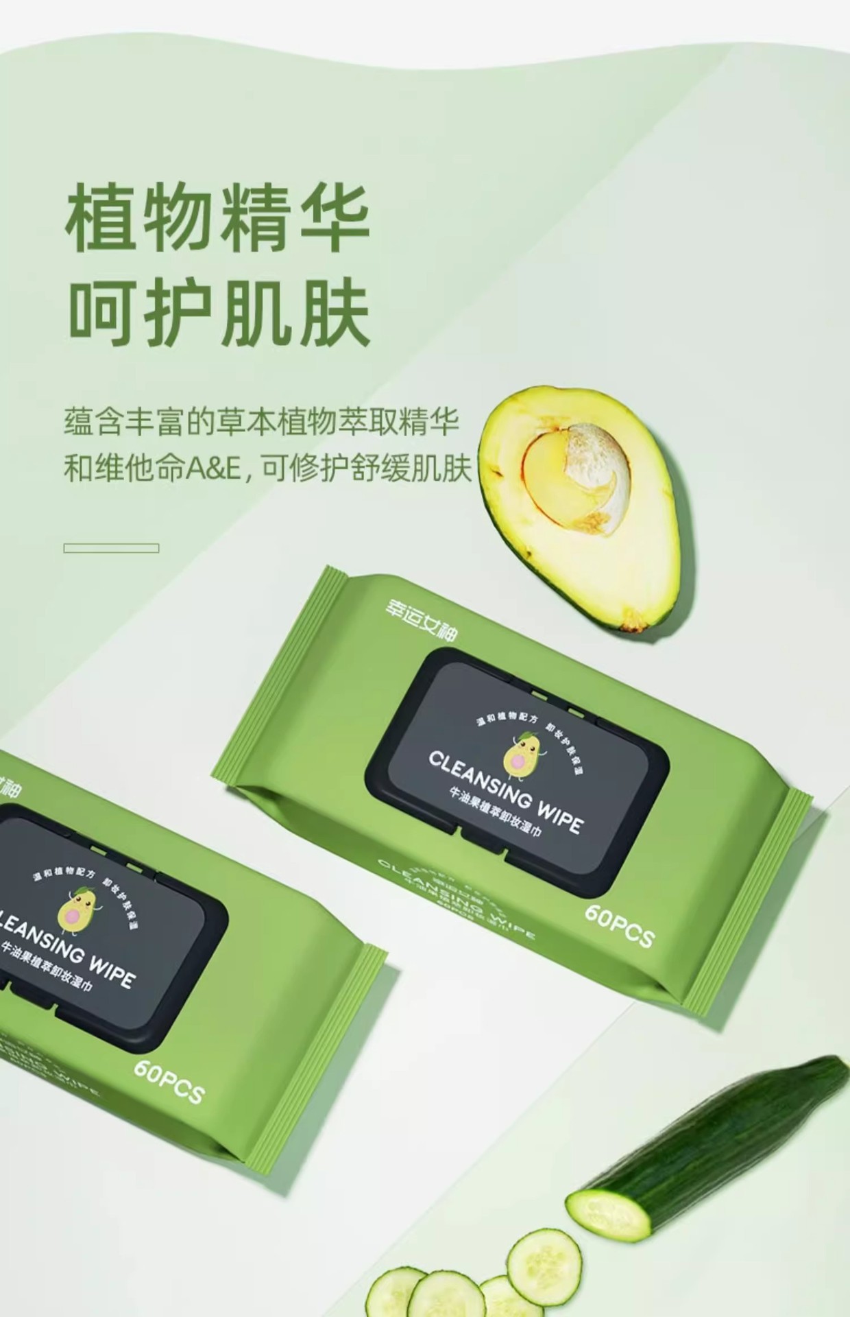 アボカド メイク落としワイプ ジェントル クレンジング フェイス アイ ワンタイム ウェット ワイプ