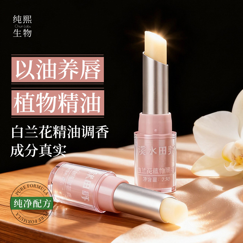 白兰花植物润唇膏滋润保湿秋冬防干裂补水唇膏淡化唇纹精油护唇膏
