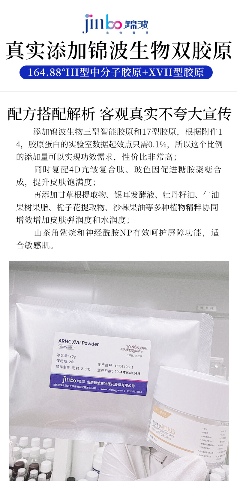 波锦生物重组三型胶原蛋白精华 紧致补水提亮男女士面部保湿精华