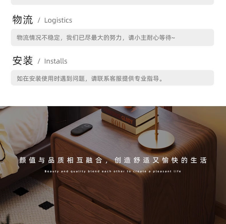 意式极简胡桃木实木悬浮床头柜家用卧室小型轻奢高级感床头收纳柜
