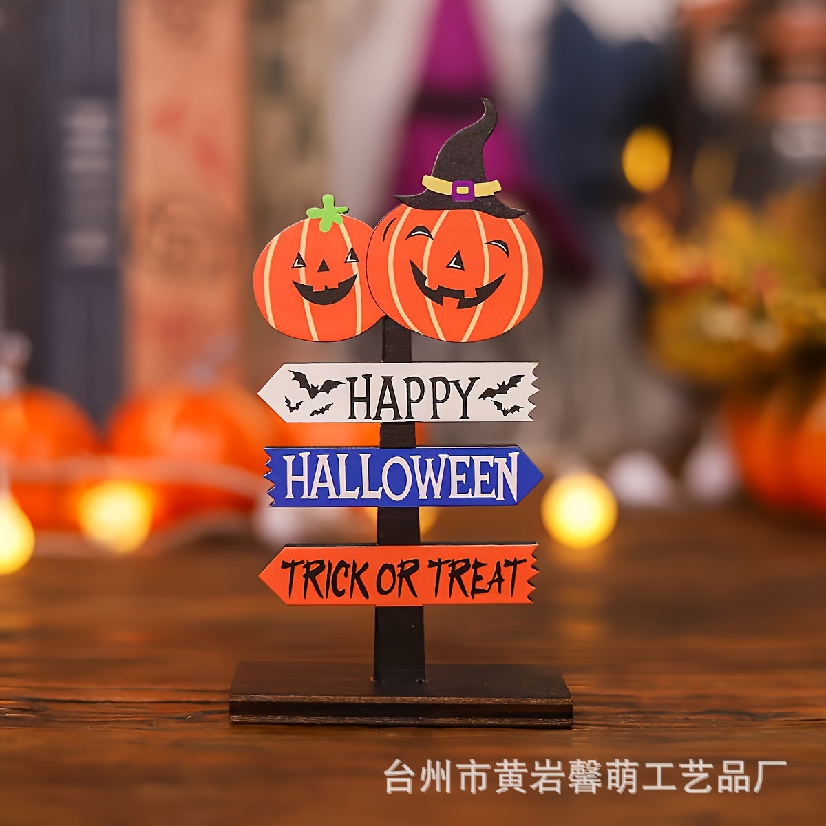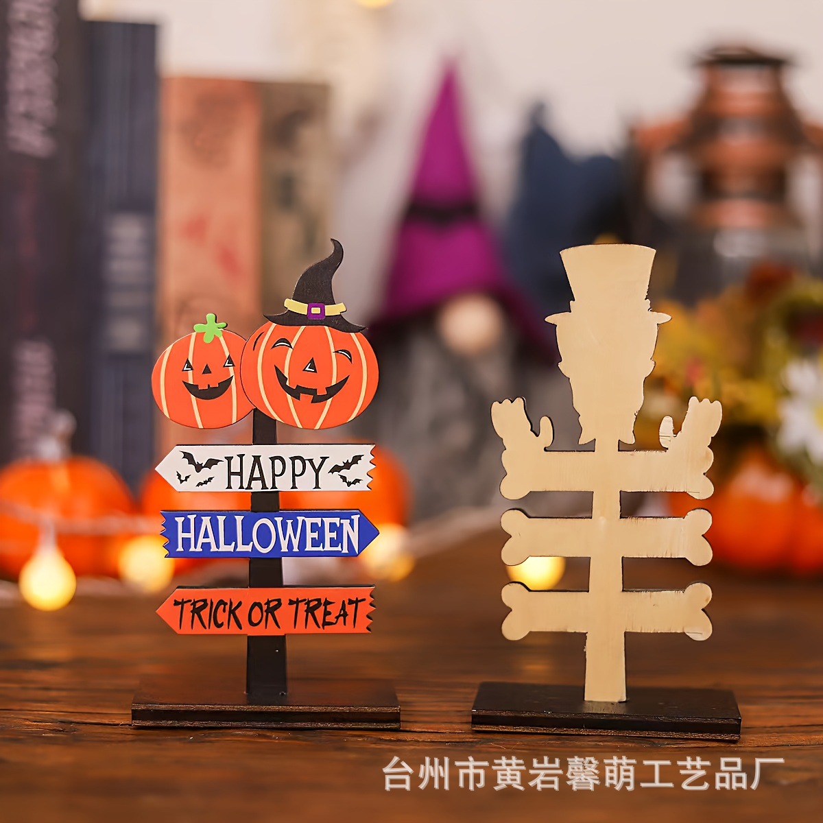 ハロウィン装飾オーナメントデスクトップ装飾小道具シーン雰囲気アレンジメント木製ゴーストカボチャコウモリ装飾