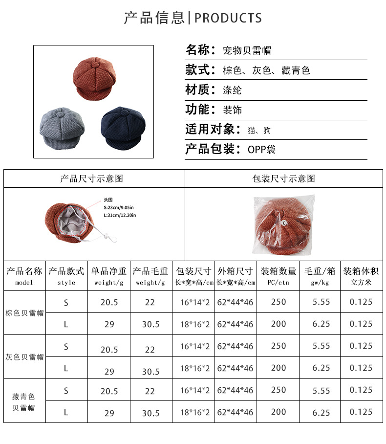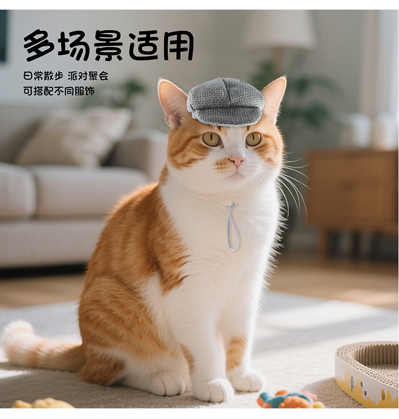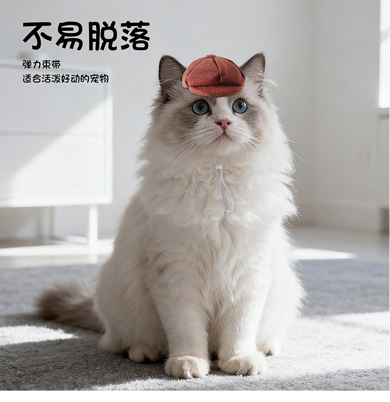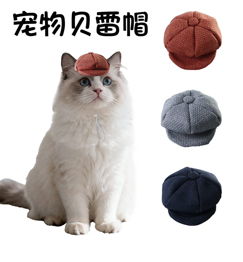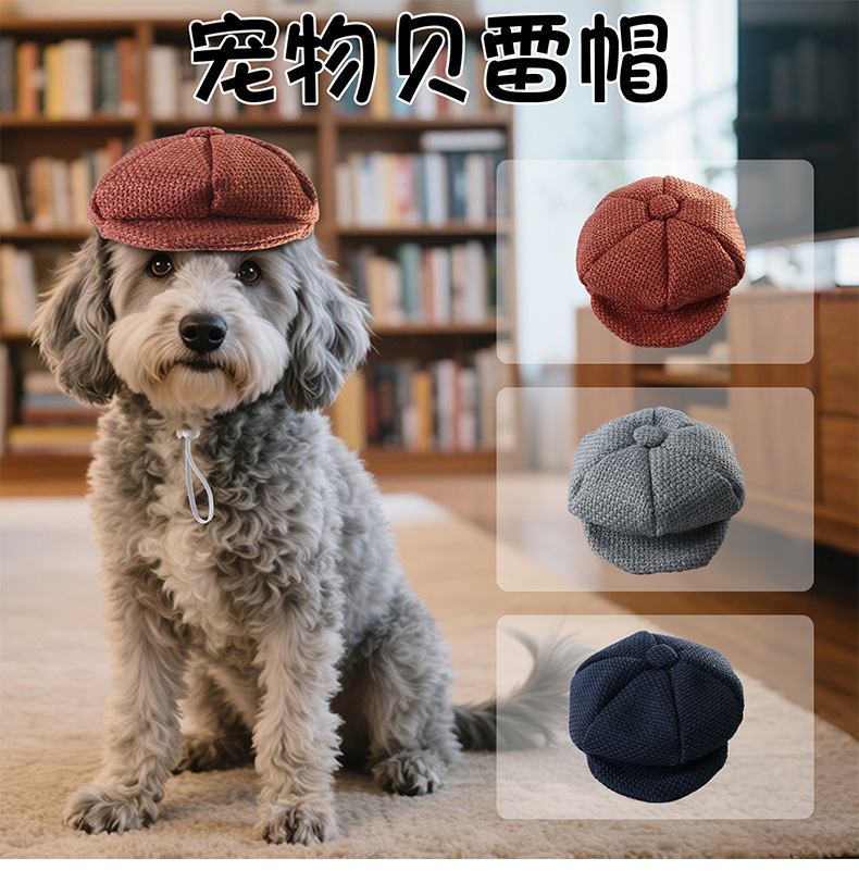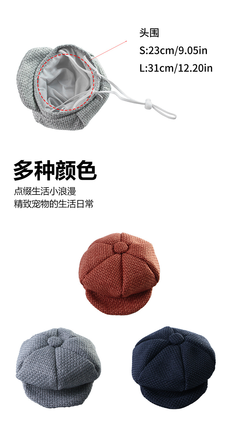 国境を越えた新しいペットベレー帽猫犬ファッション服装帽子復古麻木帽調節可能ボタン