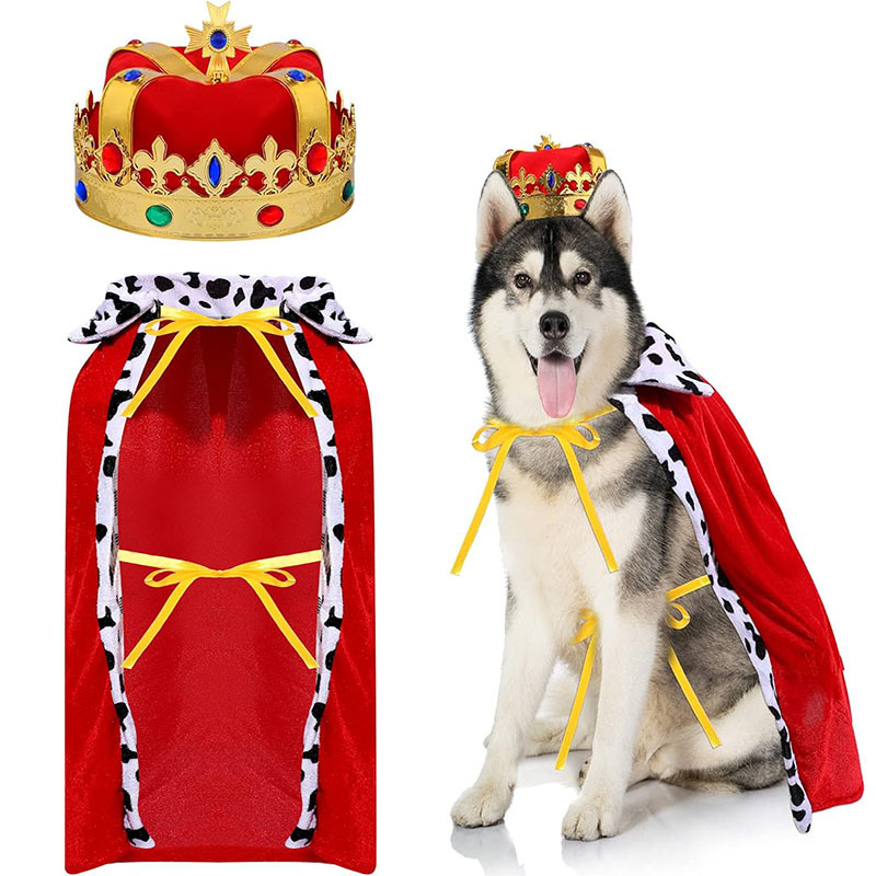 ペットのマントクラウン犬の王の帽子のマントのクリスマスの王子様の服のハロウィンの役はパーティーのスーツを演じます。