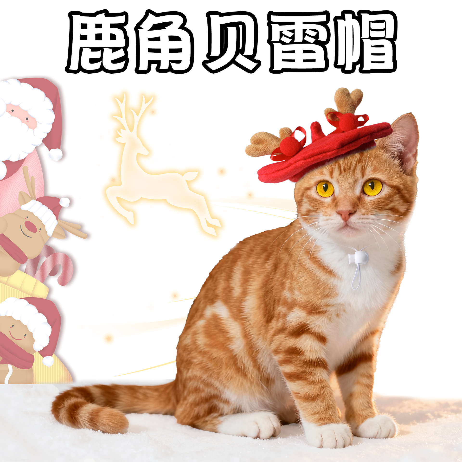 跨境圣诞节宠物帽子猫咪狗狗可爱鹿角贝雷帽装饰配件宠物用品批发