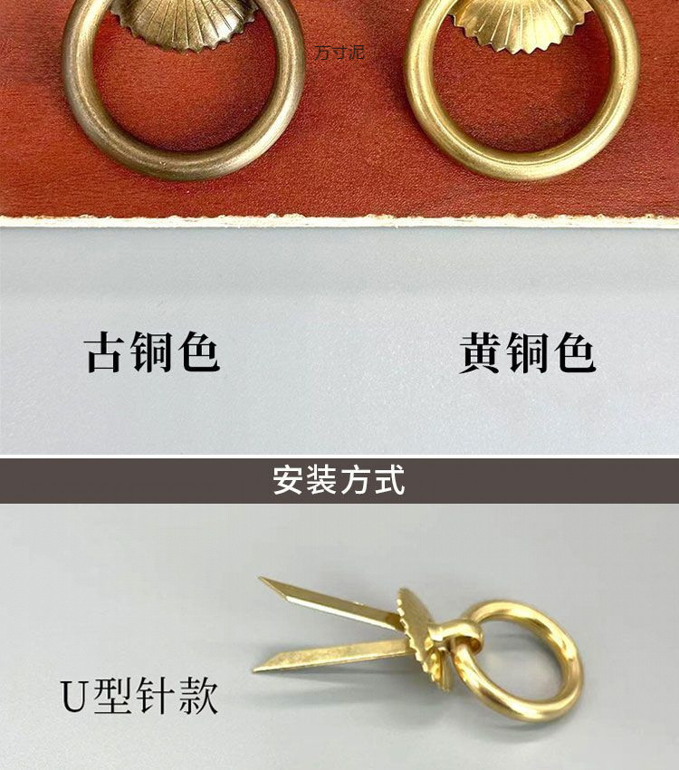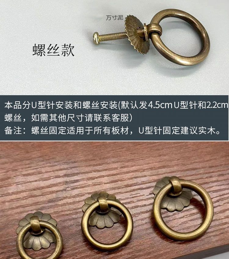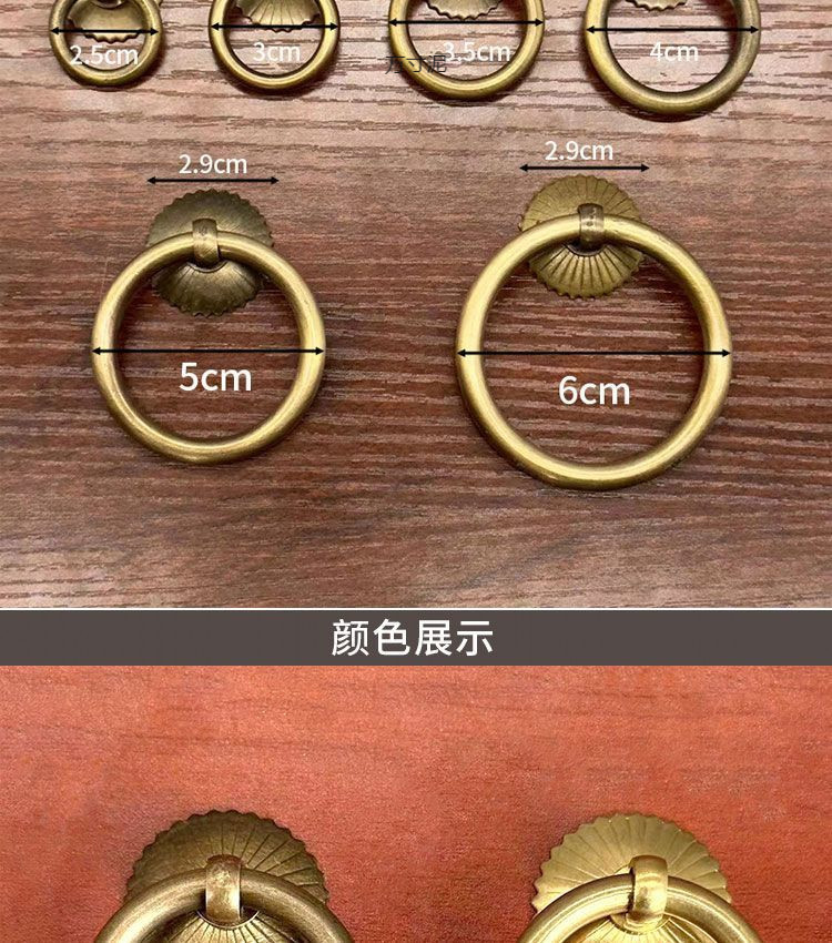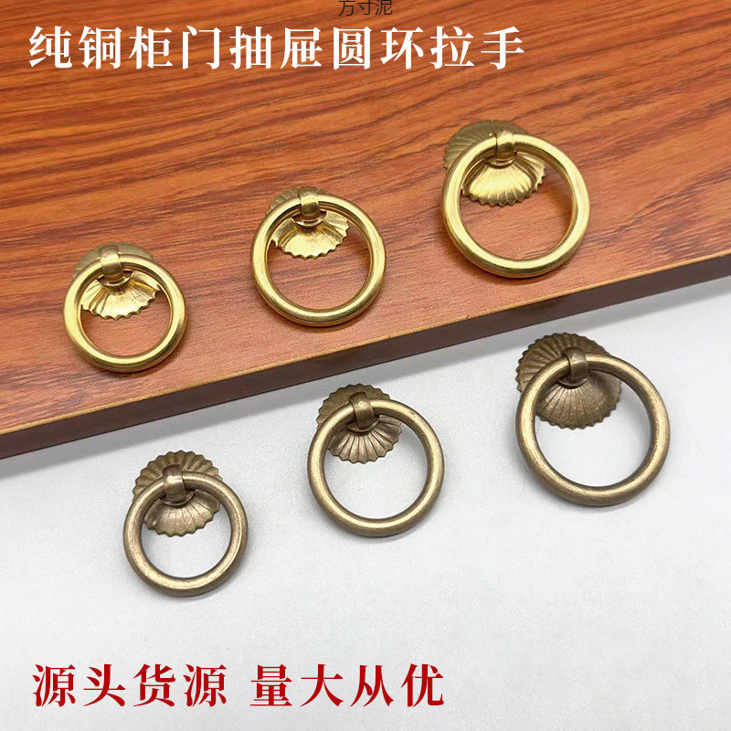 中式仿古柜门抽屉拉手老式复古柜橱柜铜拉环黄铜单孔圆环外贸批发