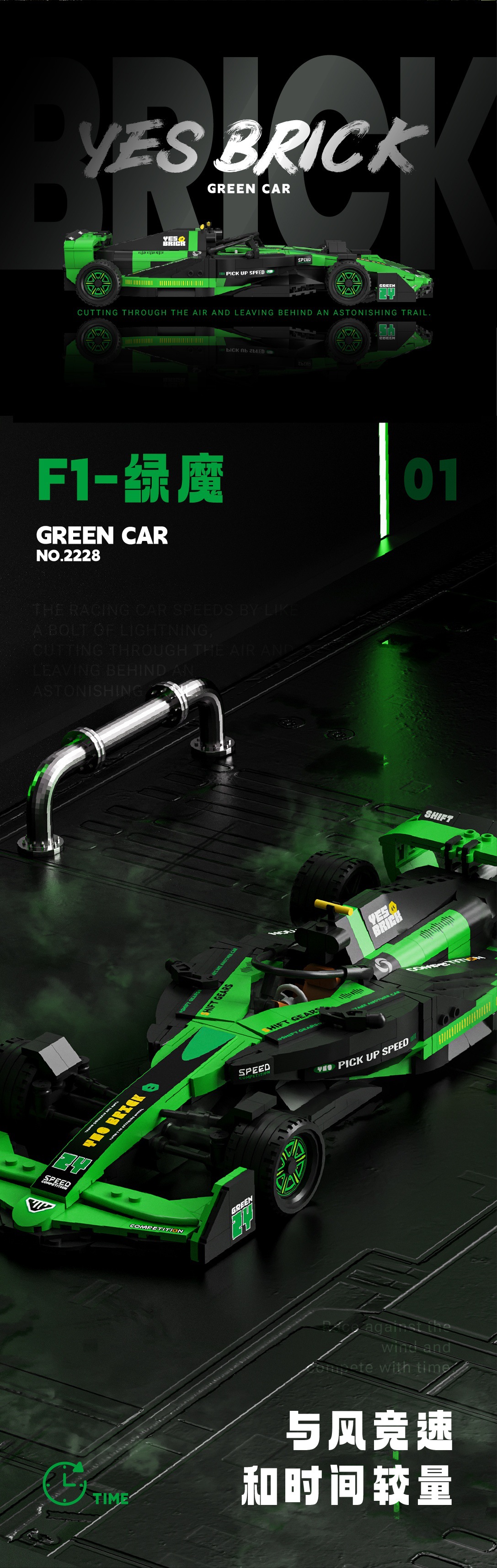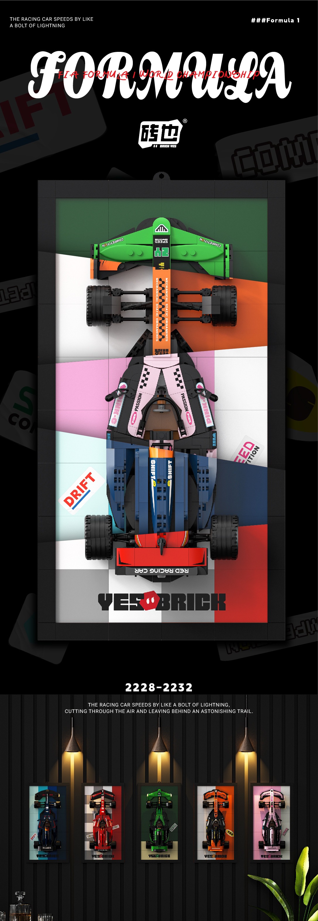 Brickye 新製品 F1 フォーミュラレーシング組み立てビルディングブロックモデル教育玩具新しいおもちゃの車レーシングクロスボーダー
