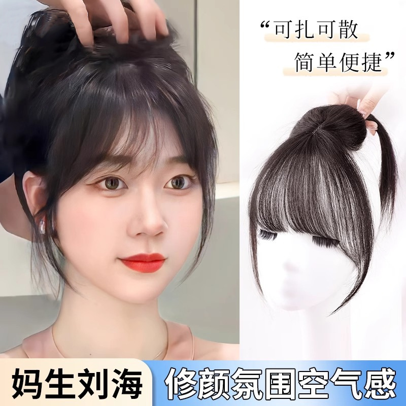 女性用リアルヘアエアバングウィッグ、中間分け、8の字バング、見えない額ウィッグ、極薄ヘッドエアバング