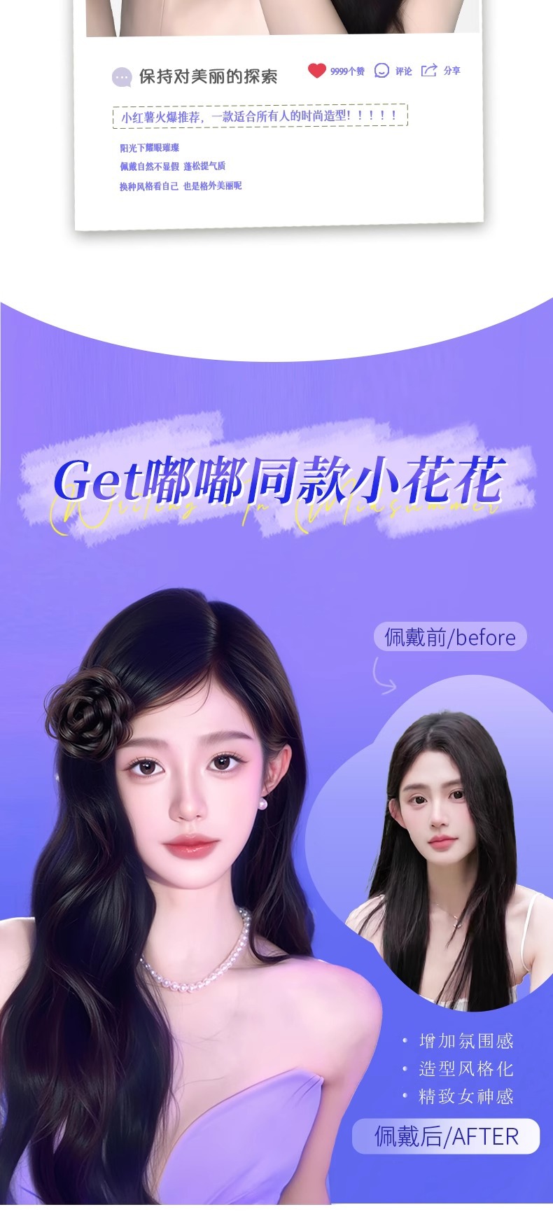 抖音と同じスタイルのウィッグヘアバンド、手作りの花のヘアピン、雰囲気のあるヘアアクセサリー、椿の花のサイドヘアゴム、丸いヘアアクセサリー