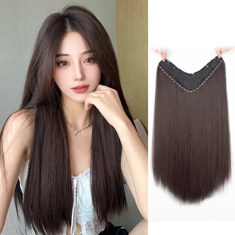 ウィッグピース 人毛 ワンピース ブラック ロングストレート ウィッグ 増毛 透明感なし エクステピース U字型 ハーフウィッグ 高温耐熱ファイバー