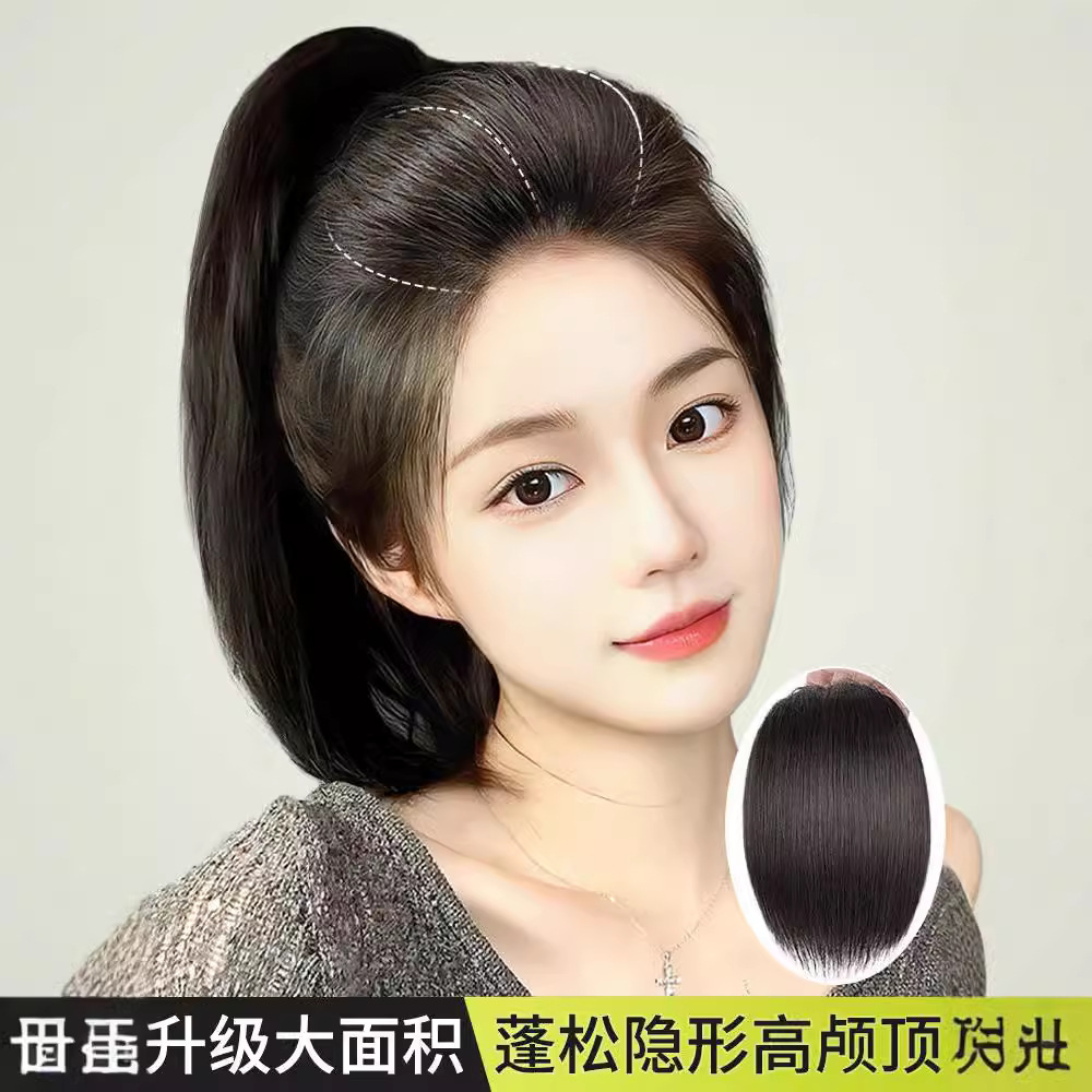 女性用3Dフレンチエア前髪ウィッグ、頭頂部再植、人工毛、自然な額カバー、白髪ウィッグ、ふっくら