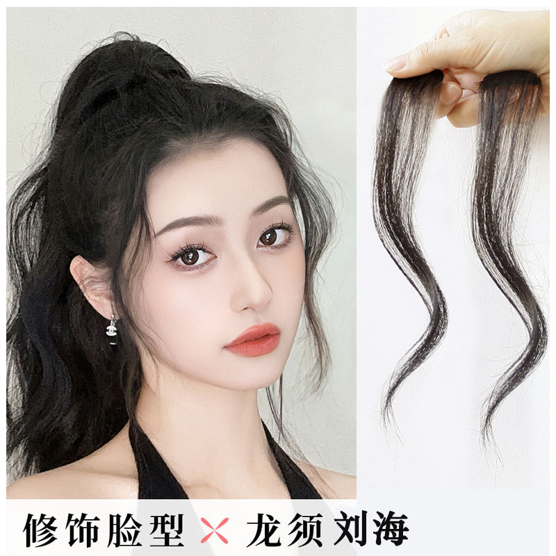 ドラゴンウィルズ前髪のアップグレード版、ドラゴンウィルズ前髪ウィッグ、両側にわずかにカールしたフォーマット前髪ウィッグ、顔の形を変える目に見えないウィッグ