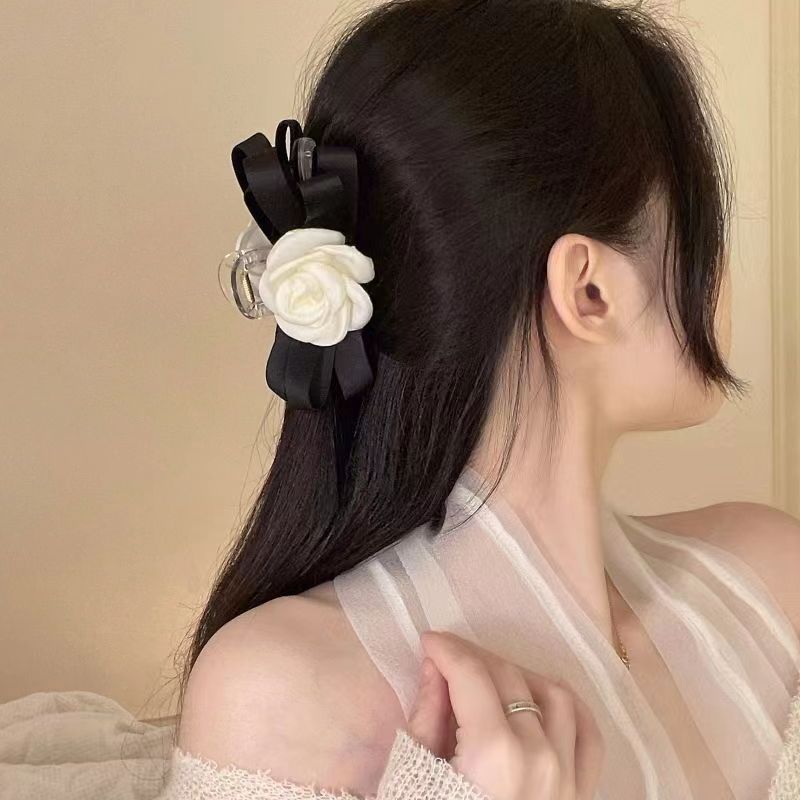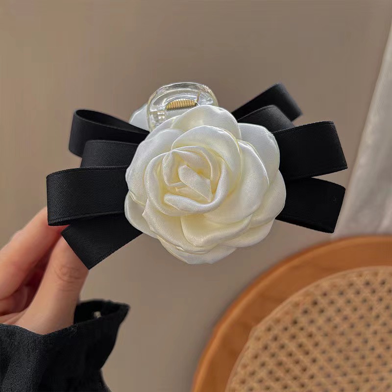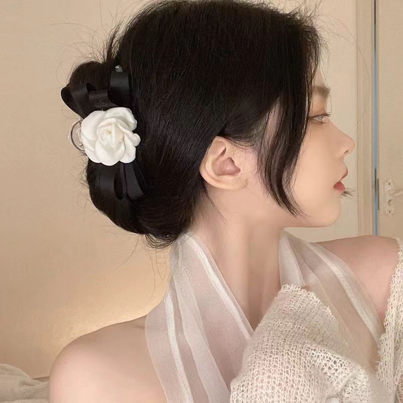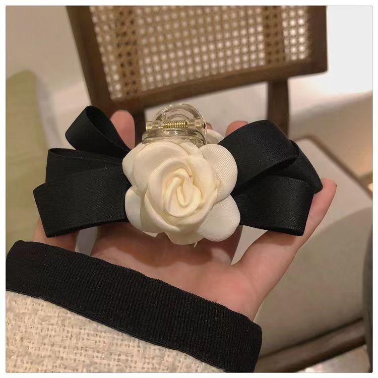 小香風椿の花蝶結びヘアクリップ、後頭部用シャーククリップ、エレガントで上品な万能ヘアピン、手作り