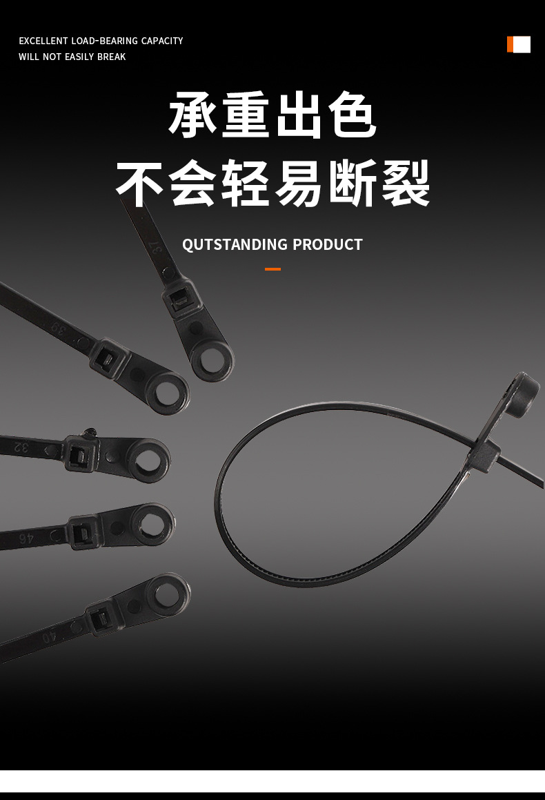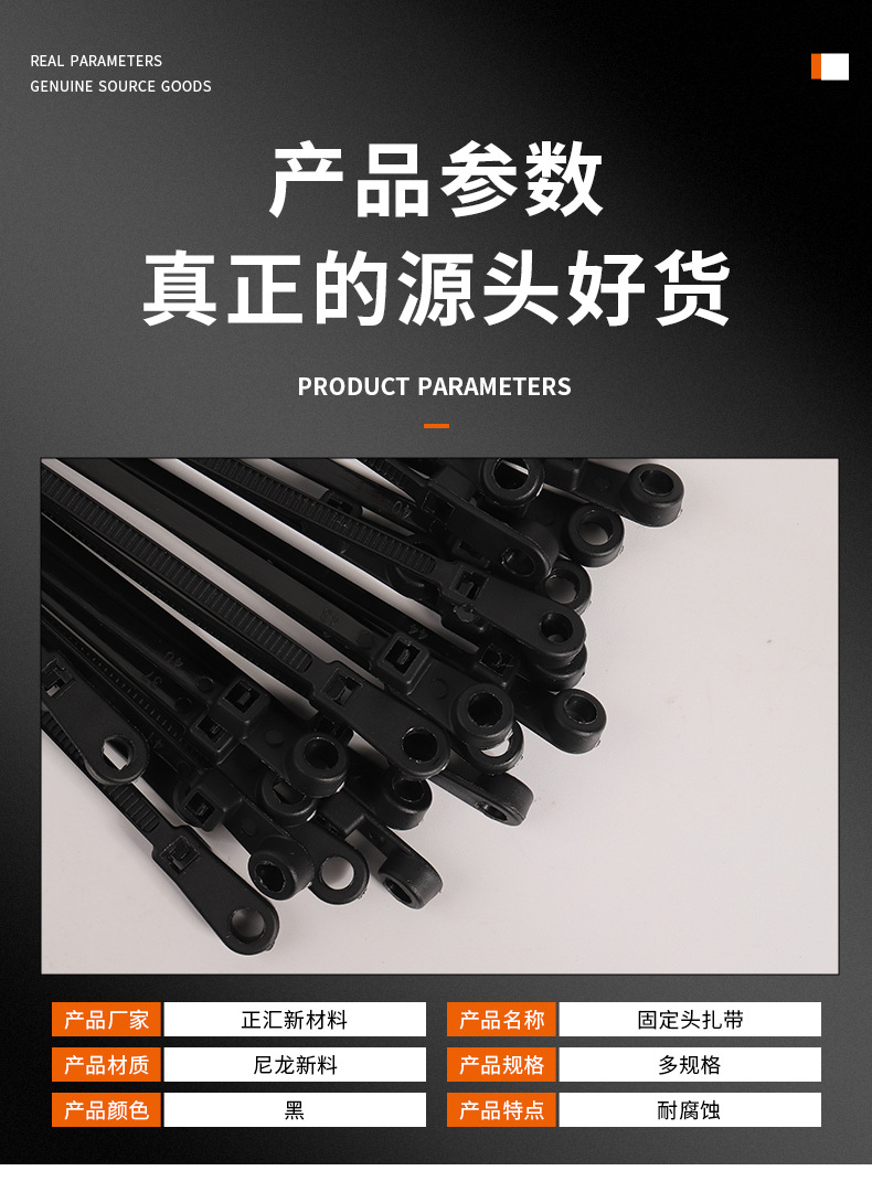 固定ヘッドナイロンケーブルタイプラスチックネジ穴丸穴セルフロックバックル結束黒と白の装飾工業用固定