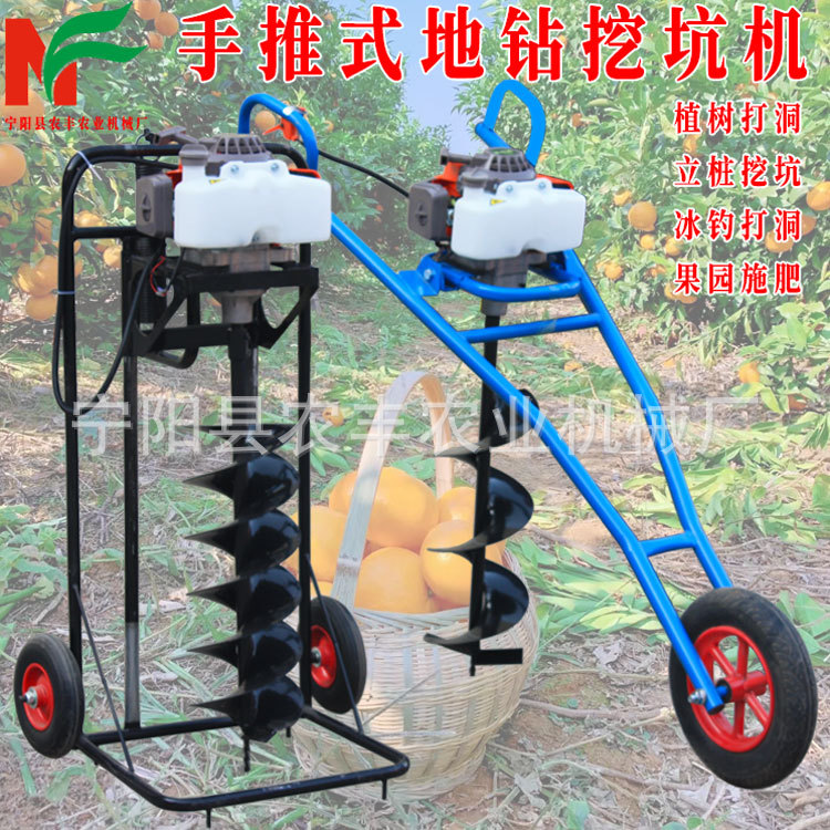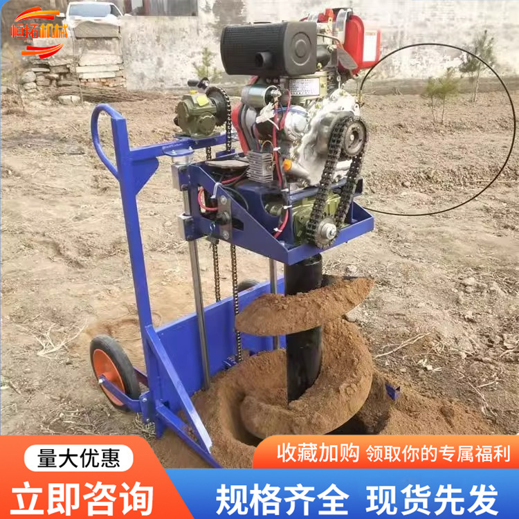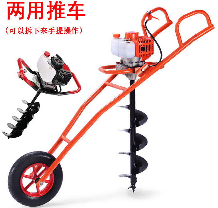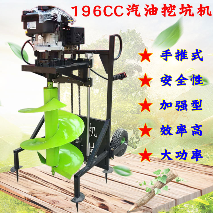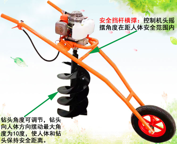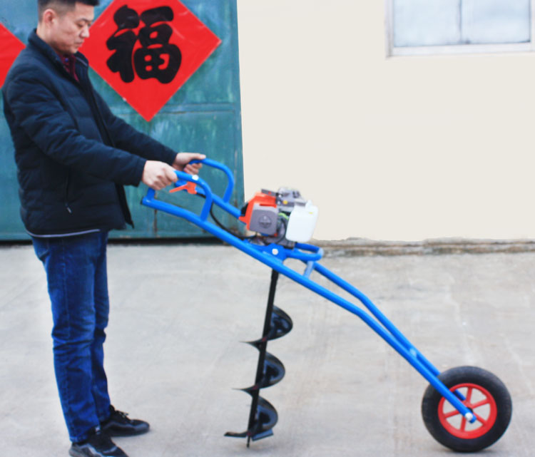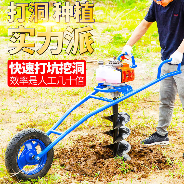 新型带架子植树挖坑机,可配置多种规格的钻头(40-500mm)打出不同大小的孔,用于种植各种根茎的苗木,也可用于木杆,电线杆,水泥杆,大棚杆的载植钻眼,本机钻头采用锰钢合成更加的坚硬。可根据树种,选配多种规格的钻头,以满足用户需要。