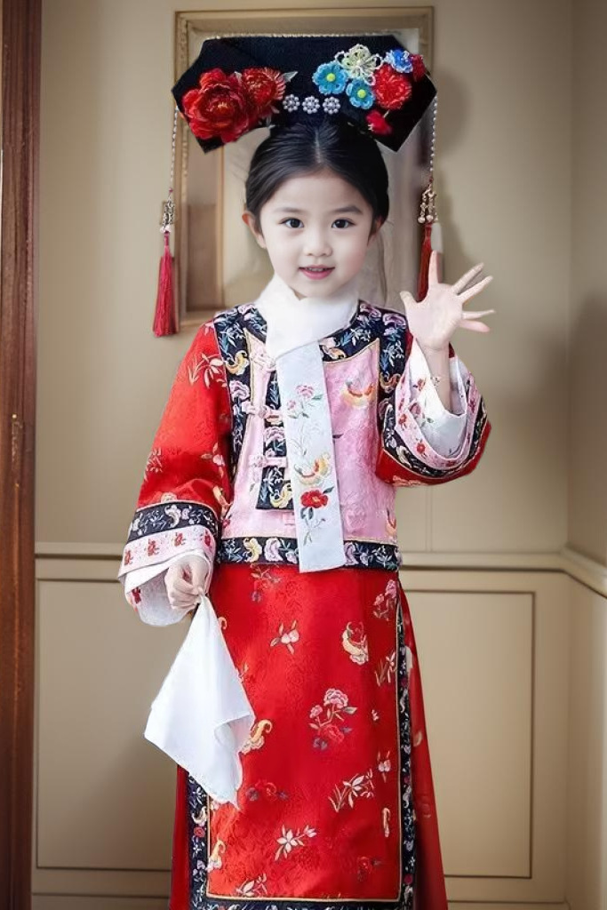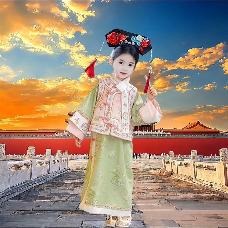 沐言儿童女童服装同款格格印花清朝宫廷汉服古装新款旗袍中国拉德