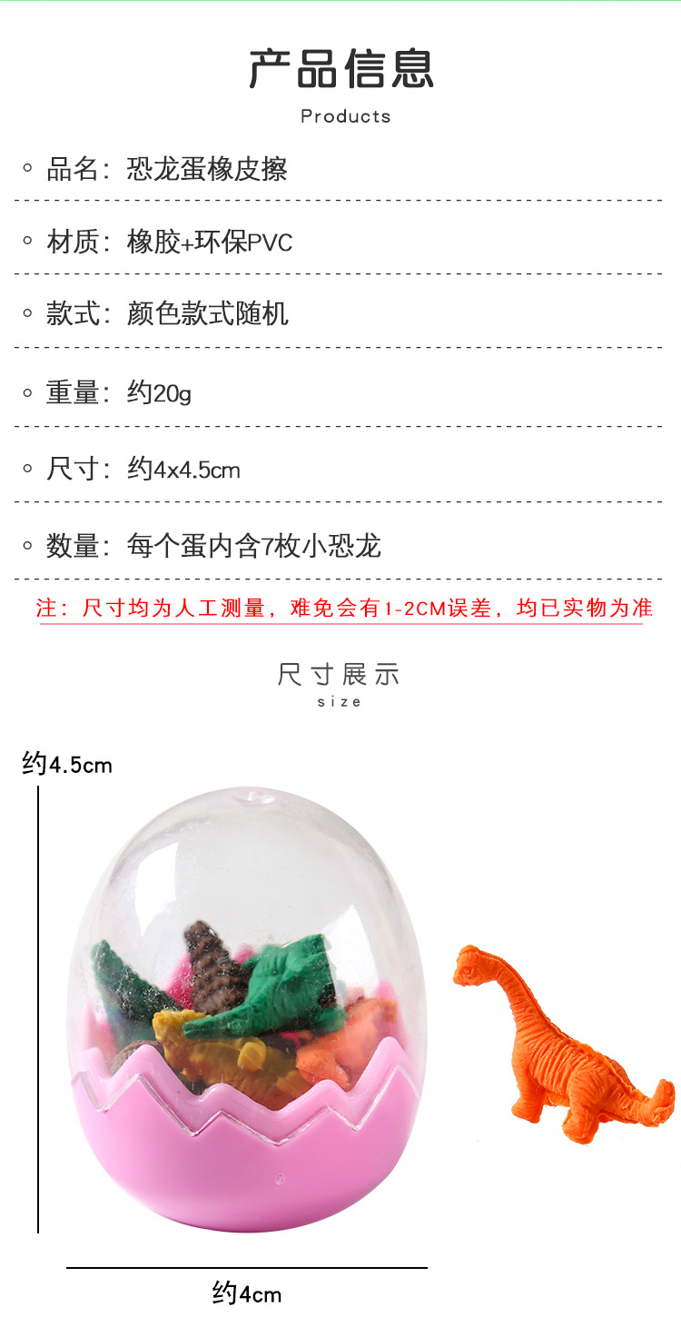 仕様 恐竜の卵消しゴム 1 個、ランダムな色