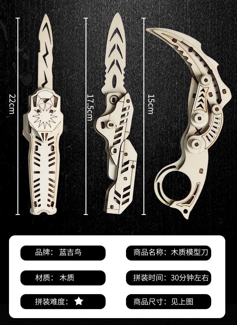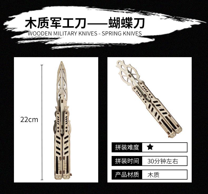csgo木质玩具刀剑甩手蝴蝶刀diy蝴蝶折叠刀直跳刀木制拼装爪子刀