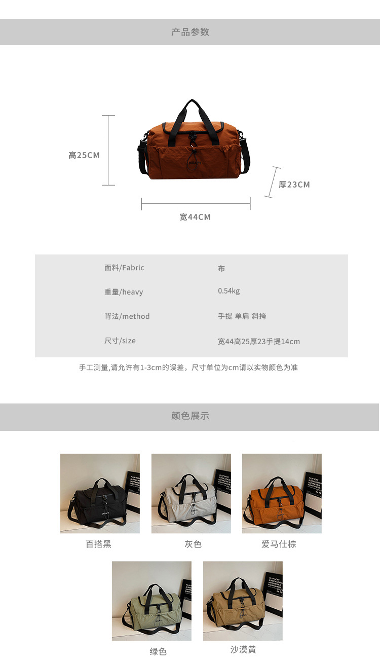 可扩展运动健身包大容量短途出行手提行李包时尚旅游旅行包轻便