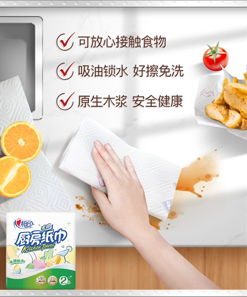 心相印厨房ロール紙2巻/エンボス家庭用吸油吸水ティッシュ大巻厨房専用代理ホームページ