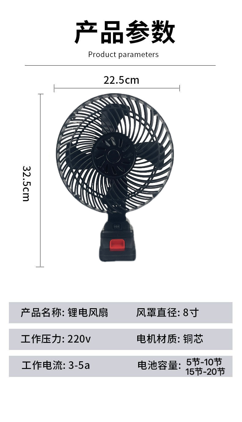 8インチ屋外キャンプリチウム電池ファン釣り工事現場オフィス寮充電無線携帯扇風機