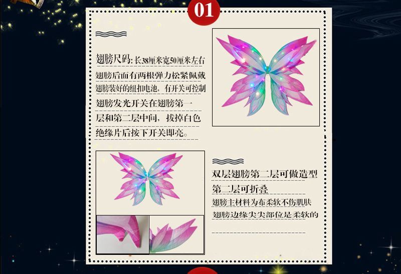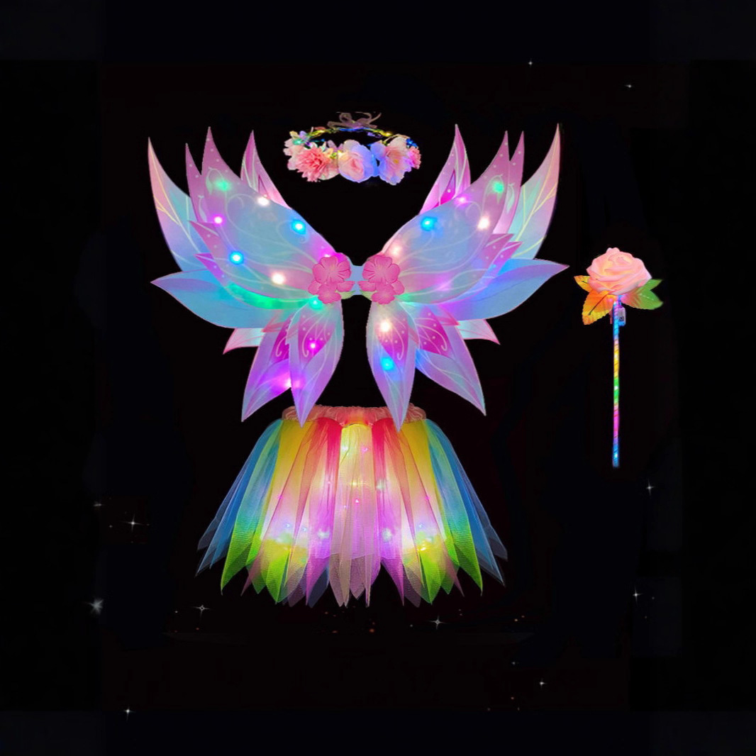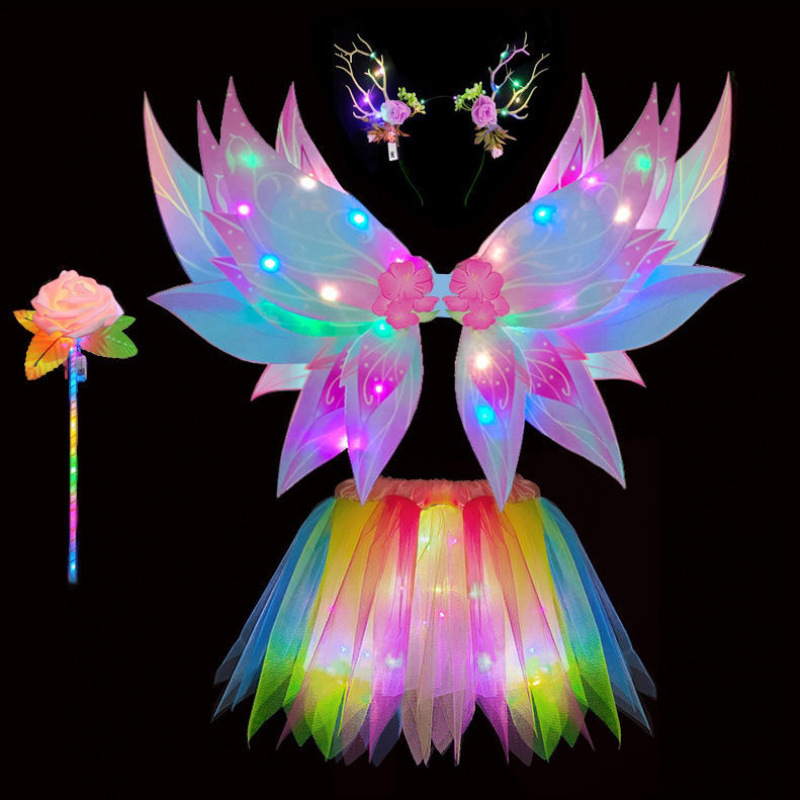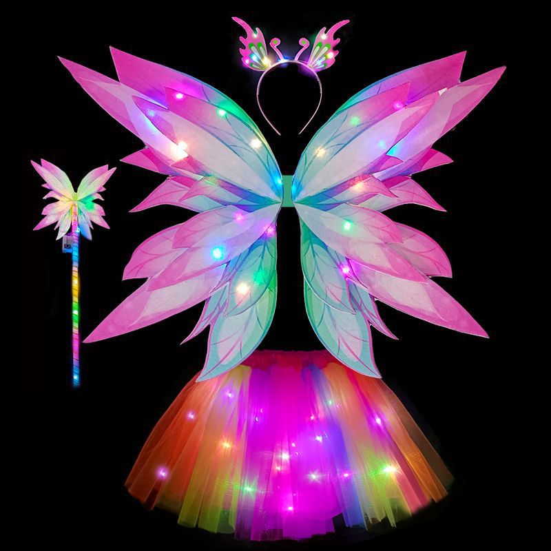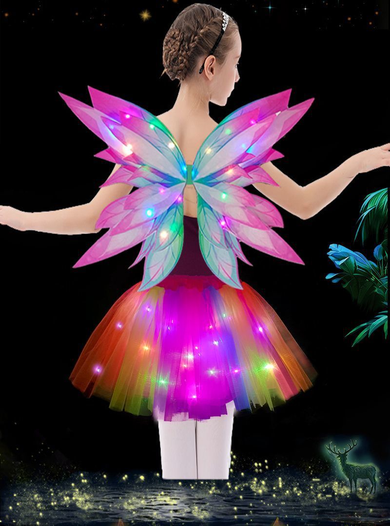 花仙子发光彩虹翅膀蝴蝶闪光玩具公主裙套装演出道具节日