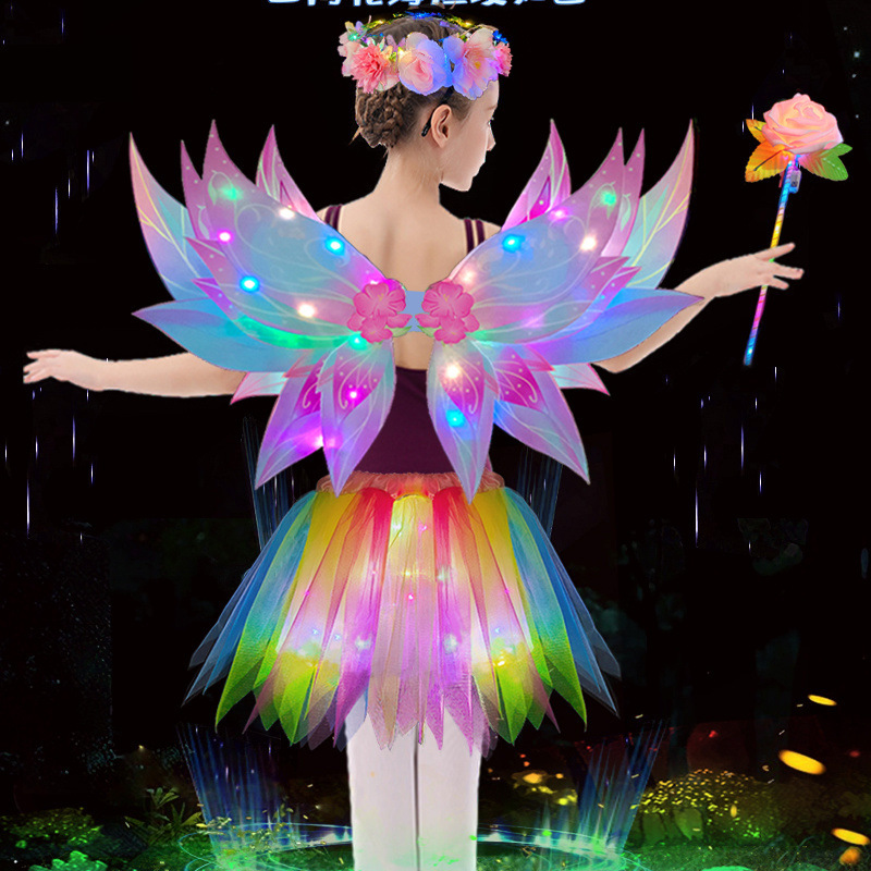 花の妖精発光翼小道具エルフバック装飾プリンセススカートリトルマジック妖精スーツガールホリデー外国貿易卸売