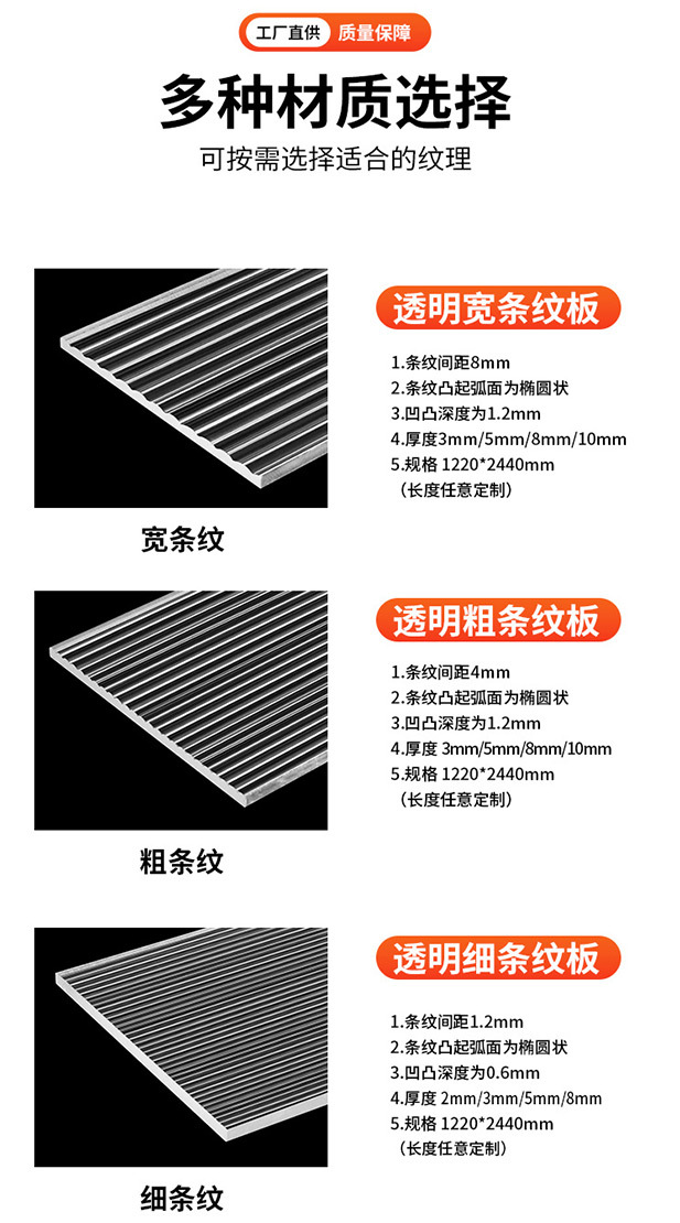 【ソースメーカー】ストライプ長虹アクリル板透明水波石模様太細幅カラー加工