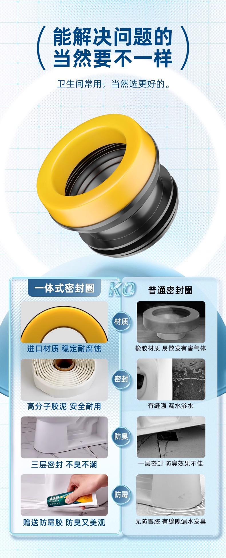 高粘便器フランジシールを厚くしたゴムリングの防臭防水防水汎用型下水便器部品