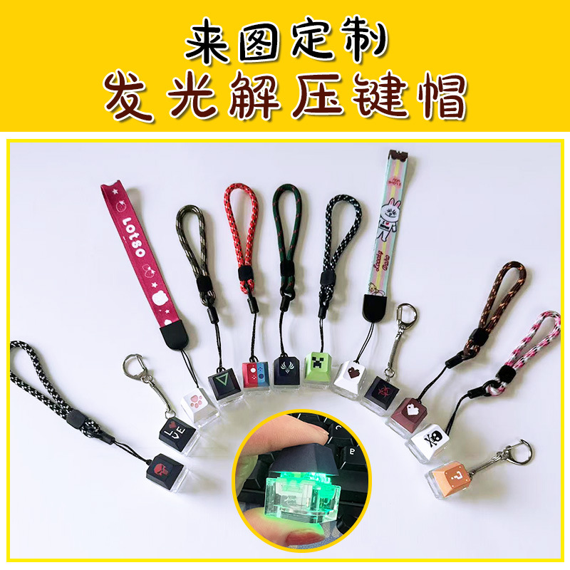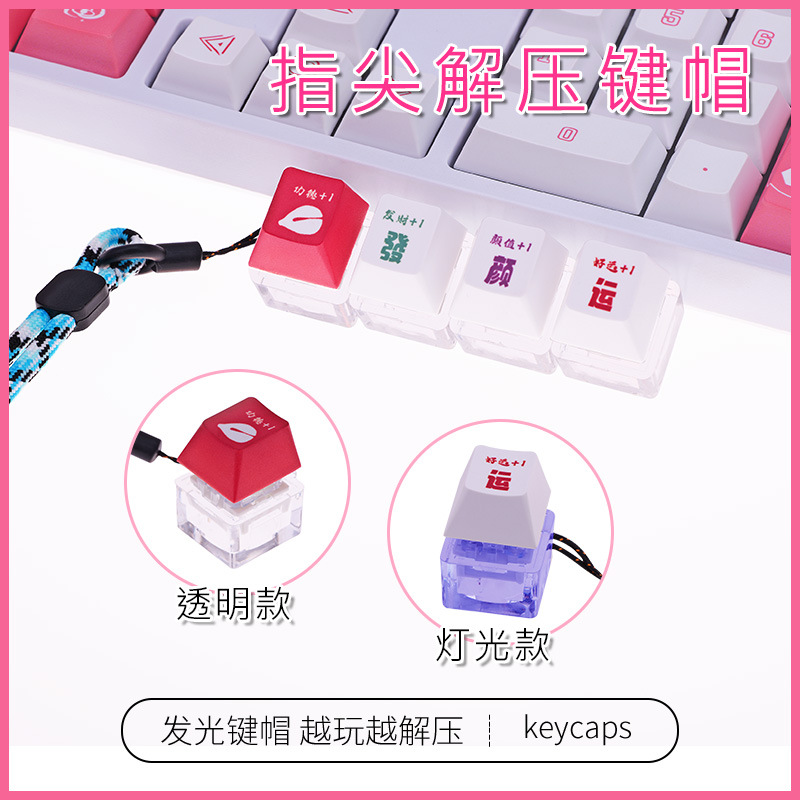 クリエイティブで面白い幸運のプレスして発光できる減圧アーティファクトシングルキーキーキャップカラフルなライトストラップ付きキーキャップ