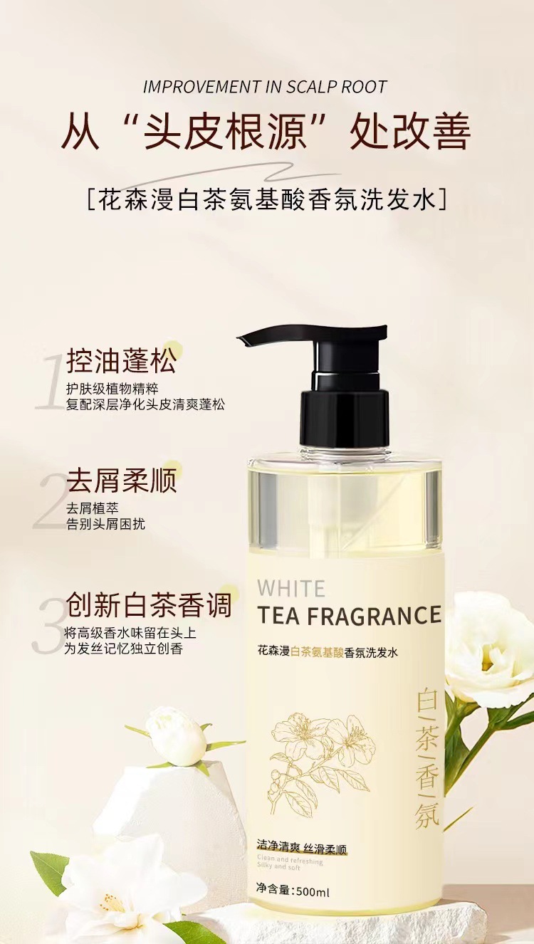 Huasenman ホワイト ティー アミノ酸の香りのシャワー ジェル香水タイプの長期的なフケ防止とかゆみ止めシャンプー オイル コントロール シャンプー クリーム
