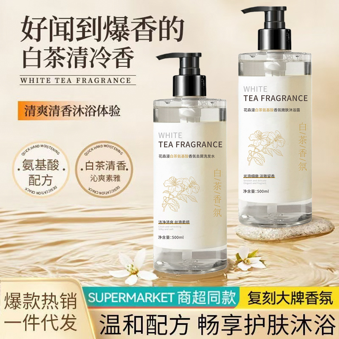 Huasenman ホワイトティーフレグランスシャンプーとシャワージェルセット滑らかで長持ちする香りフケ防止かゆみ止めシャンプー正規品
