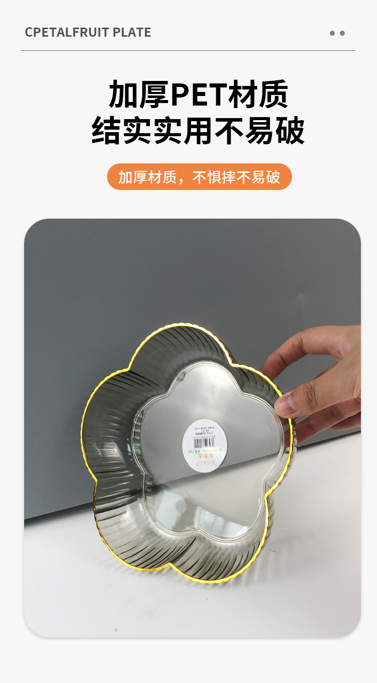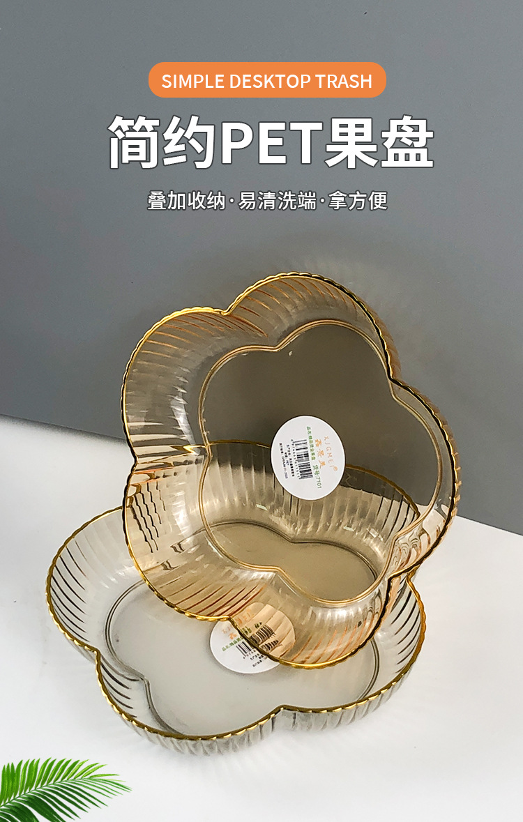 高颜値小食皿商用高級軽贅沢果物皿金辺透明果物皿家庭用プラスチックキャンディー皿
