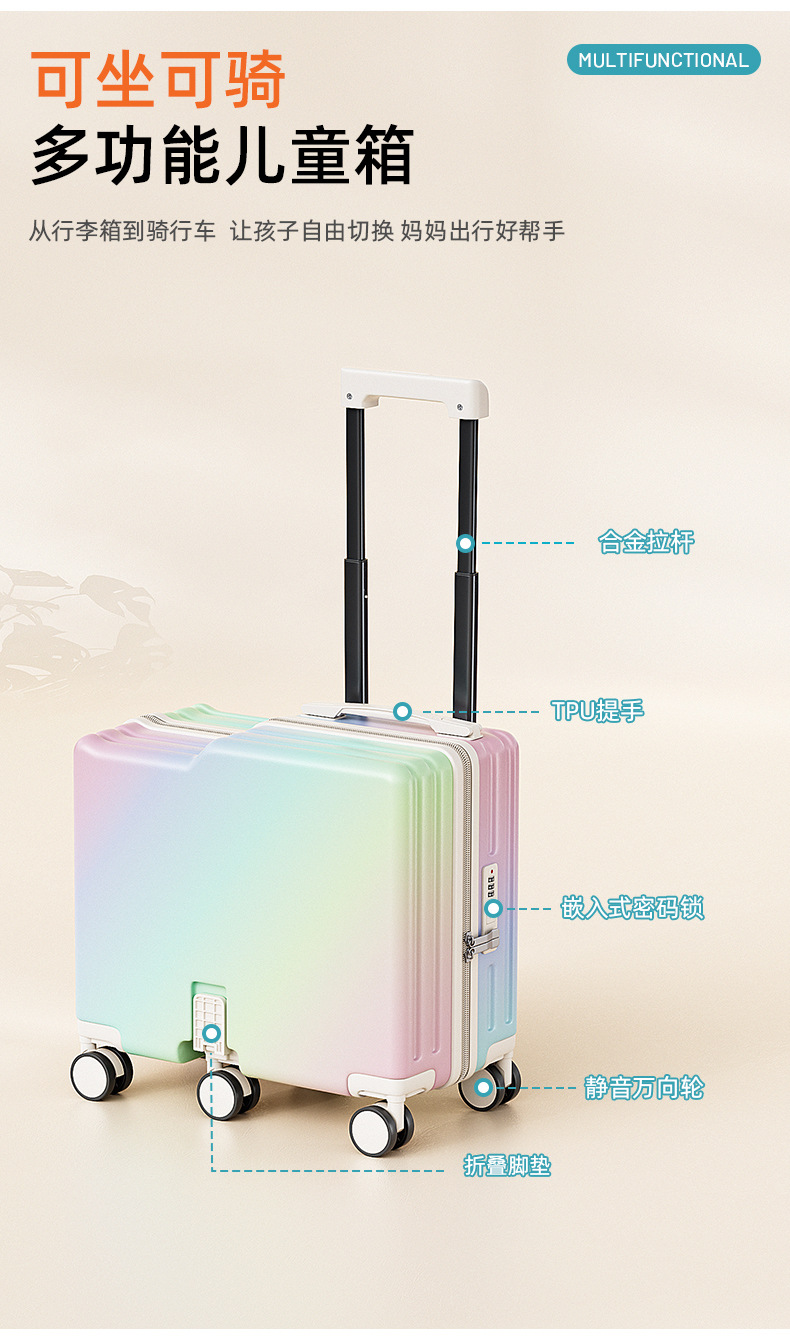 新款渐变儿童拉杆箱可坐骑旅行密码箱万向轮学生行李箱6轮加固