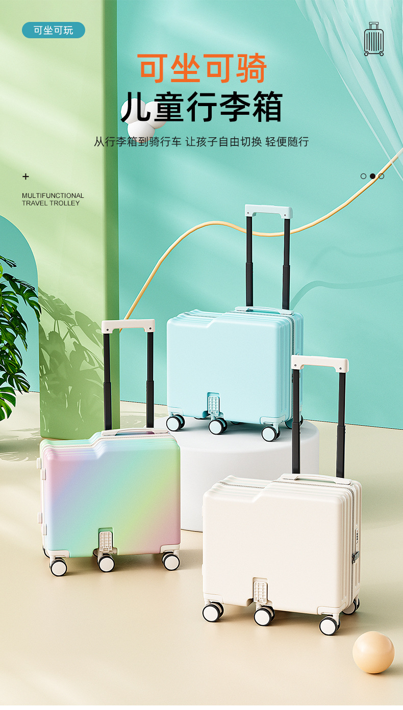新款儿童行李箱拉杆箱20寸大容量可坐可骑登机箱万向轮6轮旅行箱