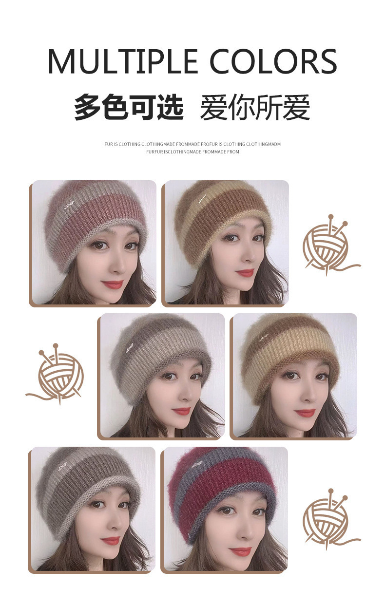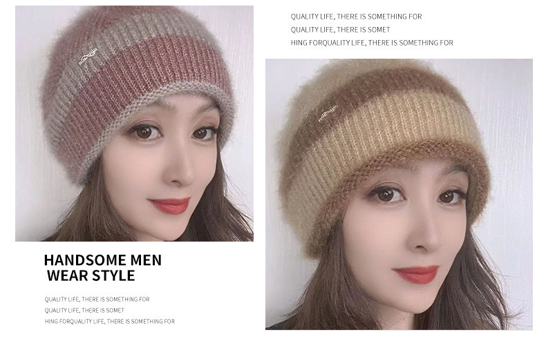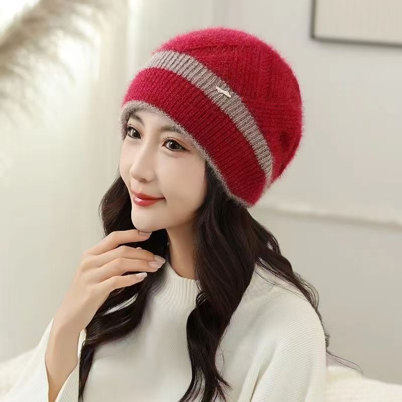 女帽冬季新款针织时尚撞色条纹贝雷女帽双层加厚保暖舒适柔软帽子