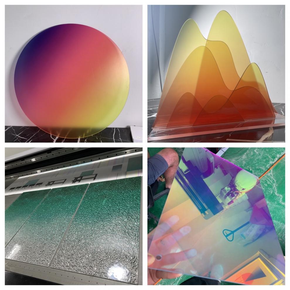パーティションアクリルストーン UV パターン装飾印刷プレートプレキシガラステーブル脚カラーグラデーションライトガイドプレートストライプ