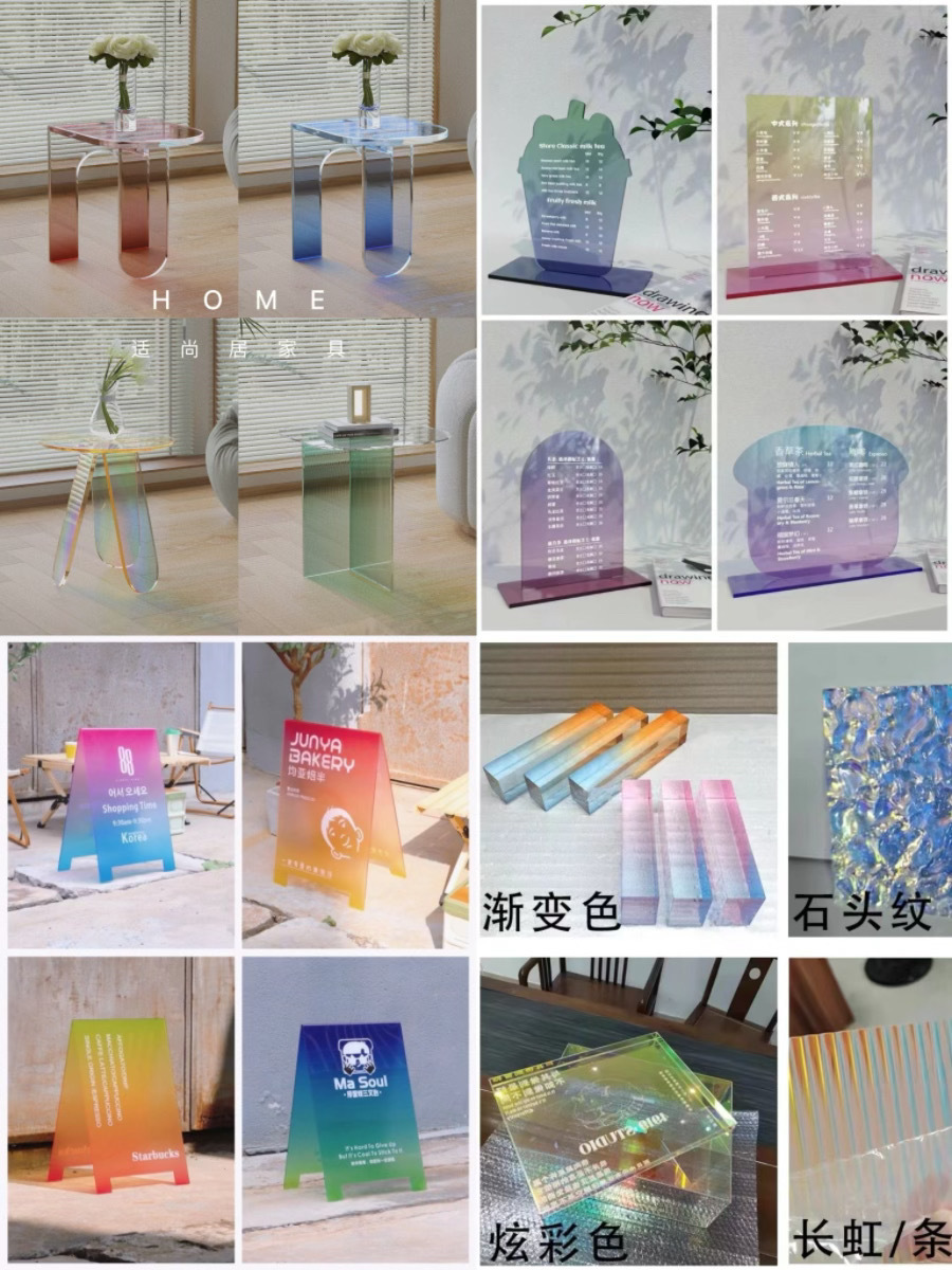 グラデーションカラーアクリル板石模様ストライプカラープレキシガラスUV印刷装飾パーティションライトガイドプレートテーブル脚