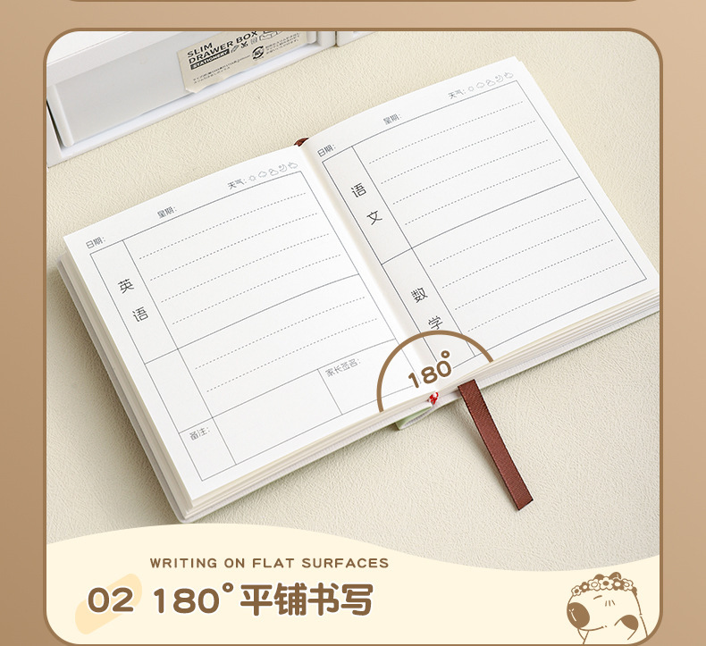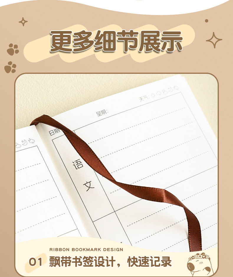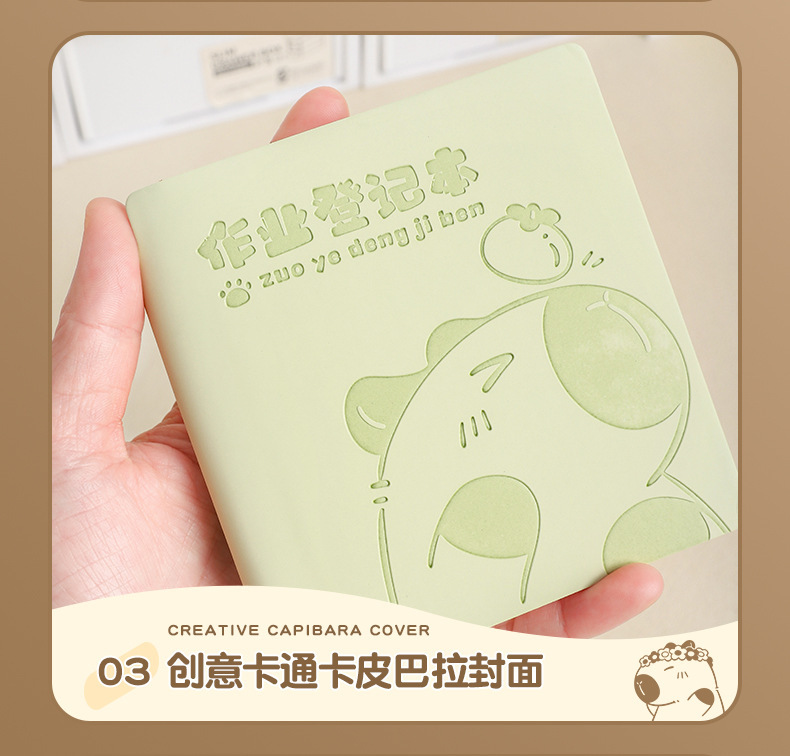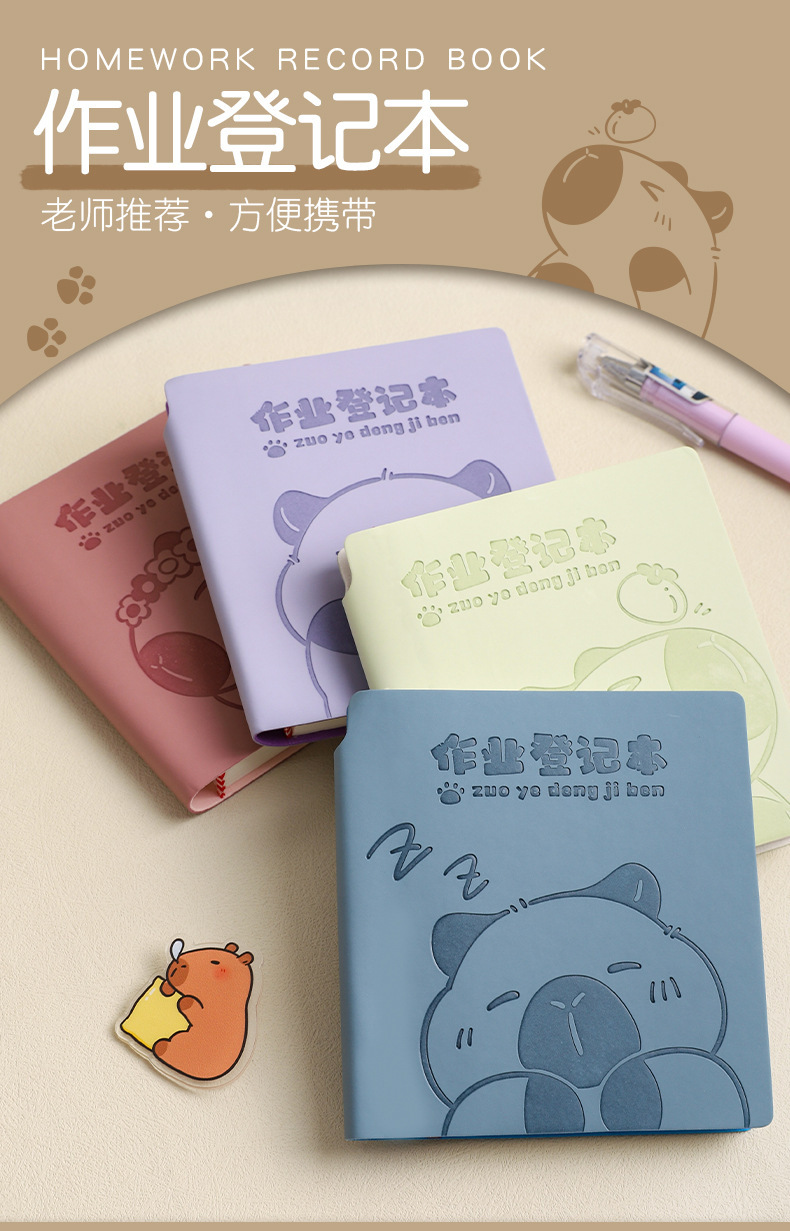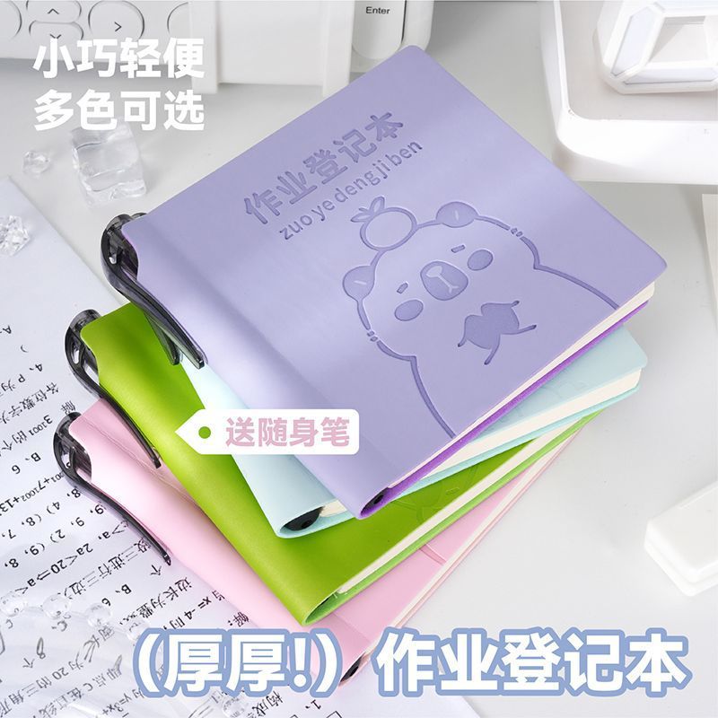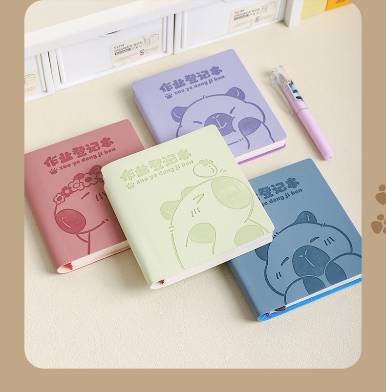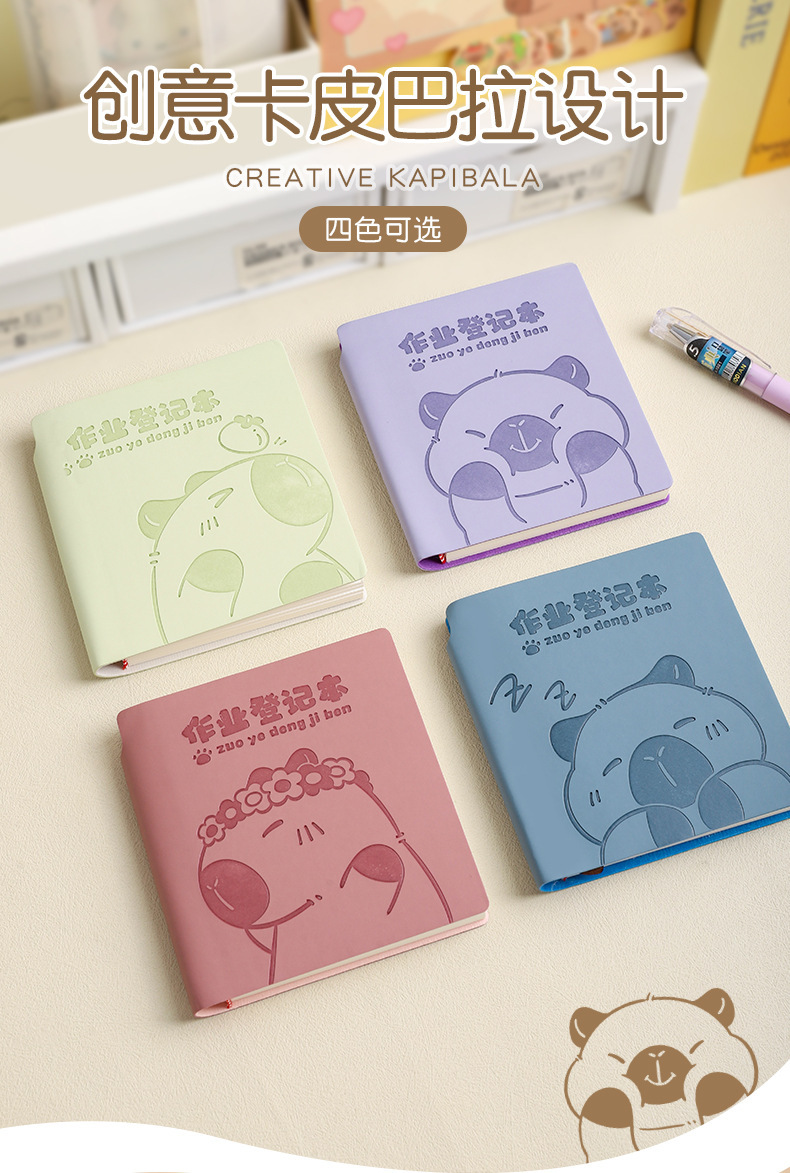 カピバラ宿題登録簿、学生宿題メモ記録、ポータブルポケットビーニーハードカバー