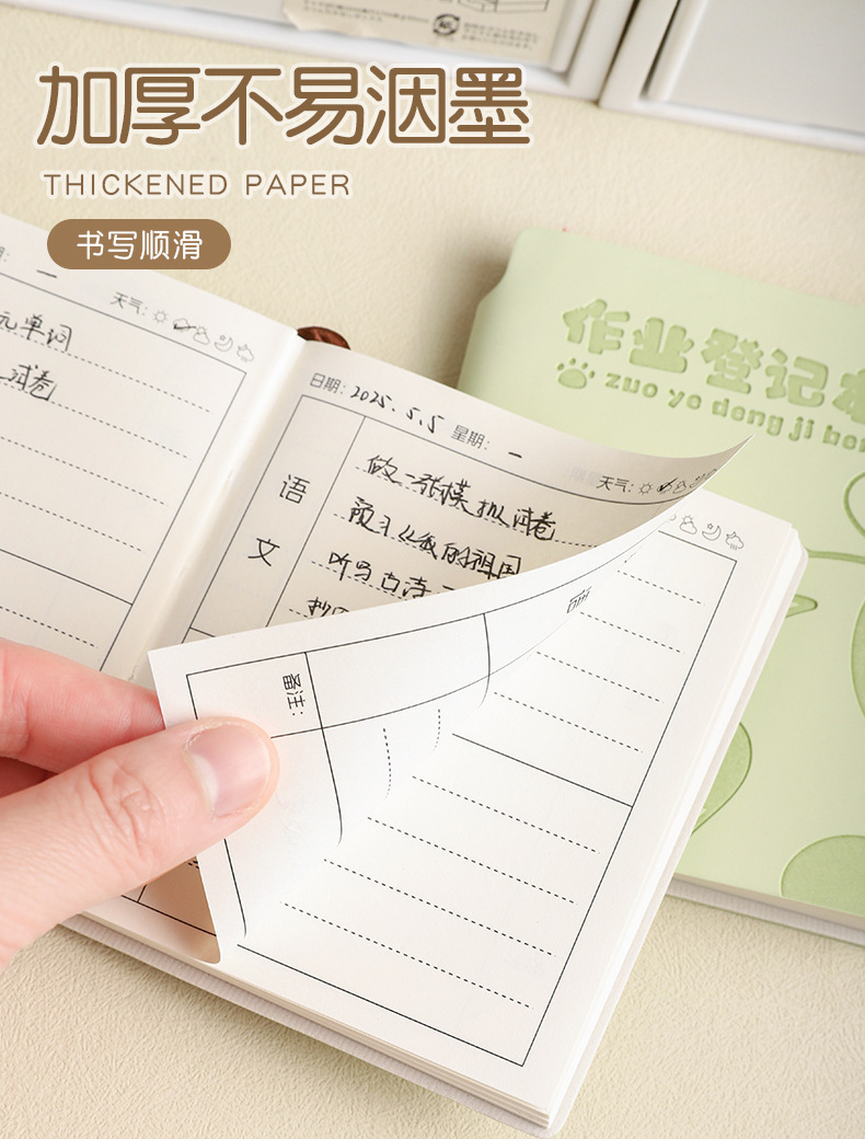 熊猫迷你作业登记本 学生作业备忘录加厚便携可插笔功能手抄本