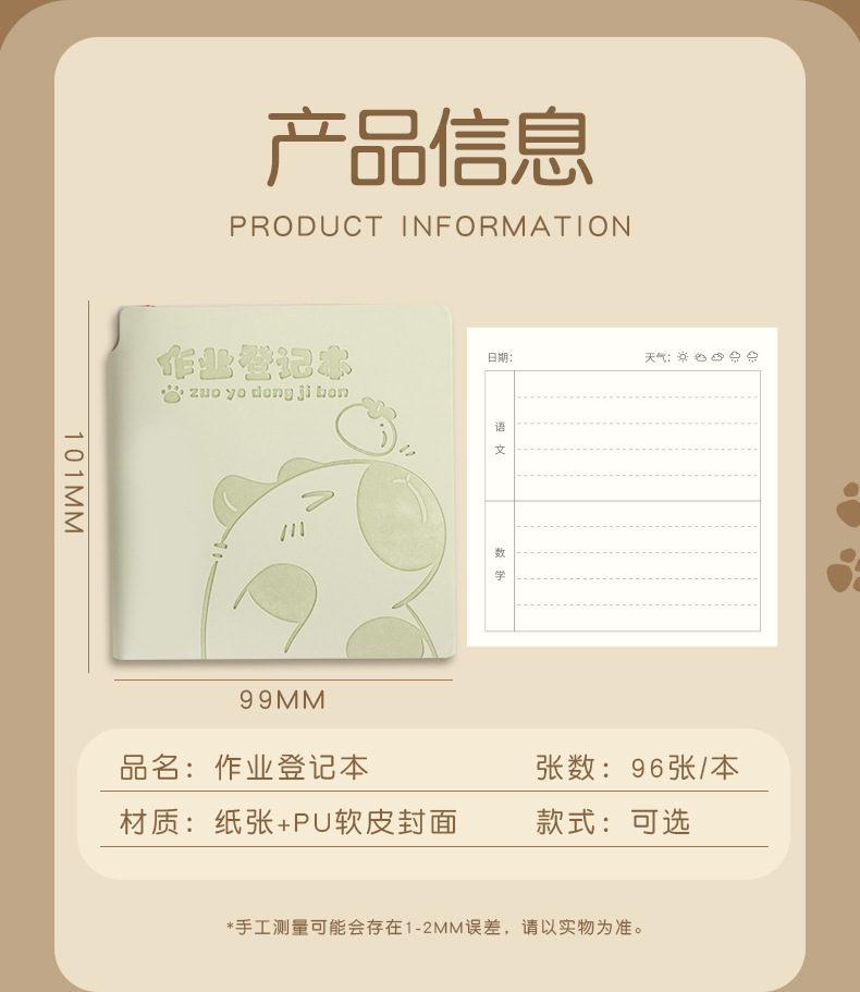 作业登记本学生便携口袋迷你笔记本卡皮巴拉高颜值可爱课堂摘抄本