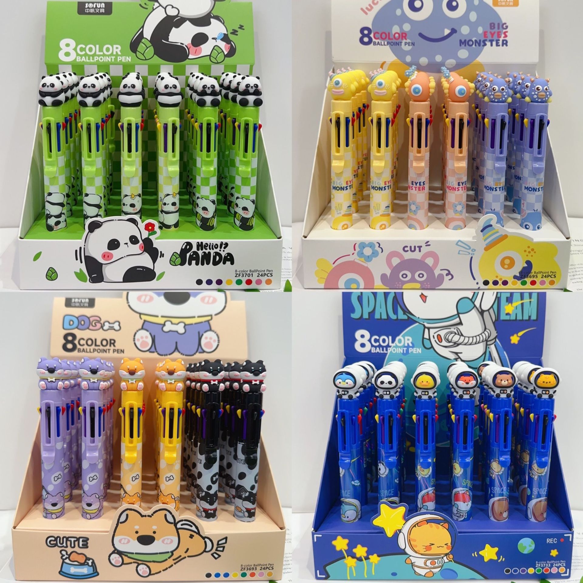 新しいモデルの宇宙飛行士の動物の八色のボールペンの学生のかわいい漫画の多色の手帳のペンのカラーペンはオイルペンを押します。