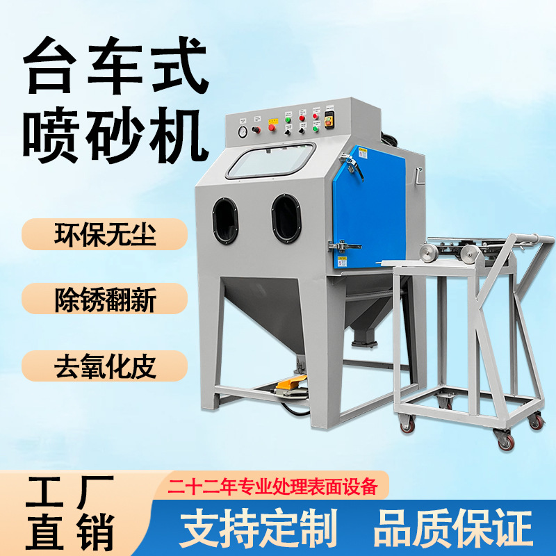 カート一体型手動サンドブラスト機、乾式サンドブラスト機、金型金物サビ取り、ダストフリーボックス型高圧サンドブラスト機
