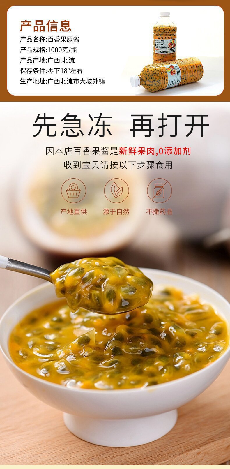フレッシュパッションフルーツピューレジャム業務用広西冷凍濃縮果汁果肉紫香りミルクティー果汁店用