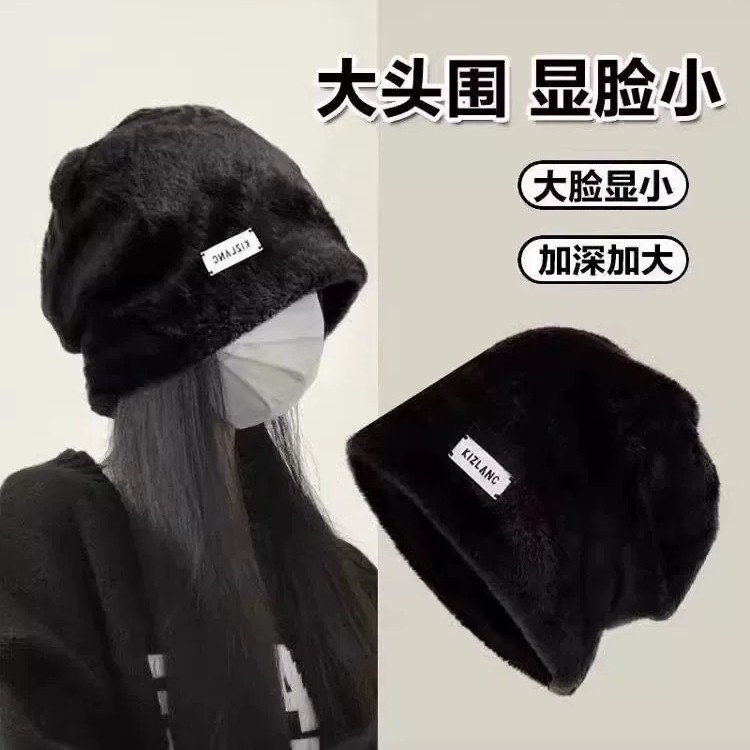 大头围堆堆帽小针防寒护耳套头帽女春秋季保暖包头冷帽百搭显脸