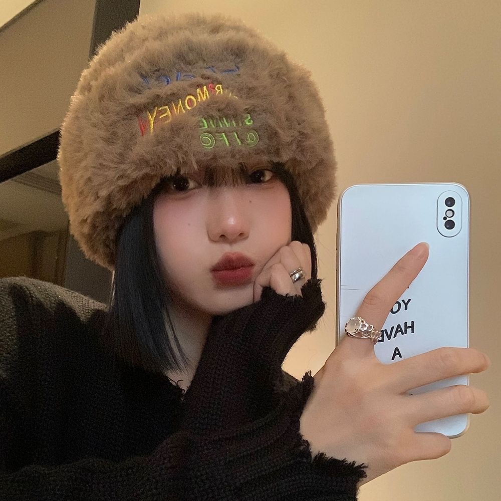 毛茸茸针织帽女秋冬季日系大头围加厚保暖毛线帽韩版显脸小帽子潮