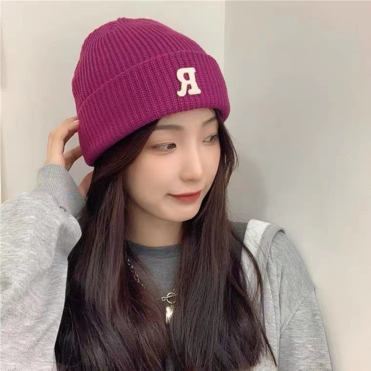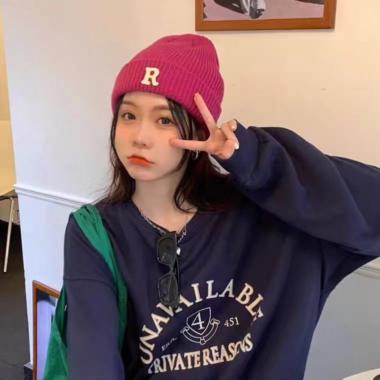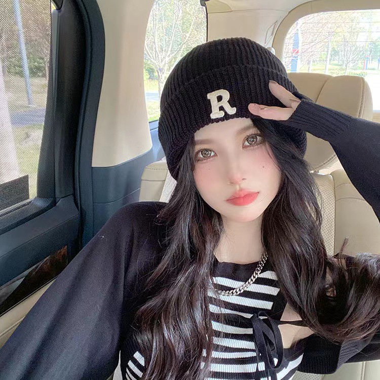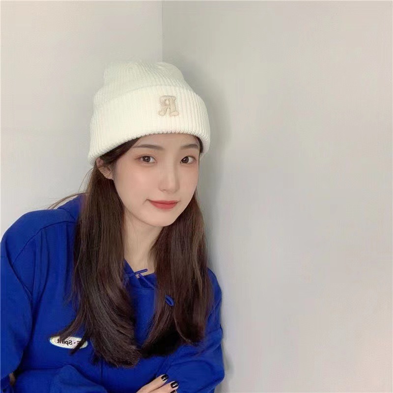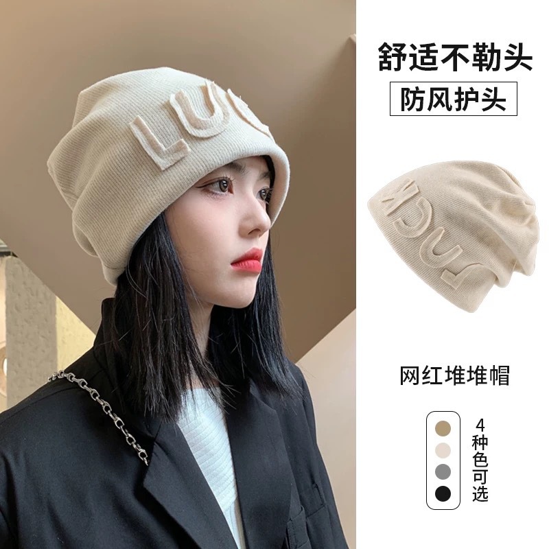 网红堆堆帽女春秋时尚字母产后月子帽日系毛线针织包头帽冬季冷帽