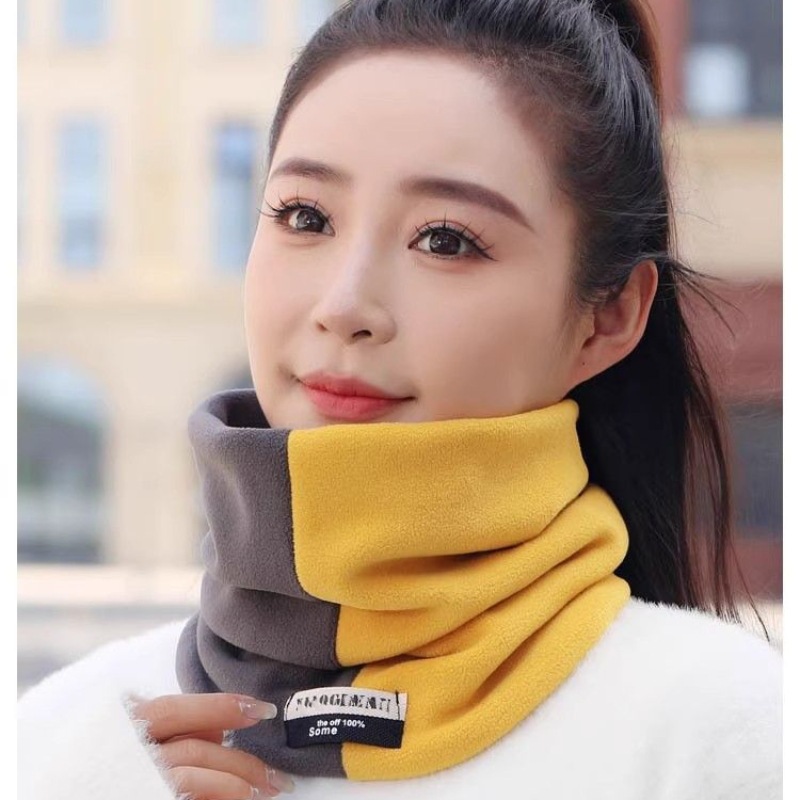 秋冬围脖保暖加厚男女护颈拼色双层脖套户外骑行大版百搭面罩围巾