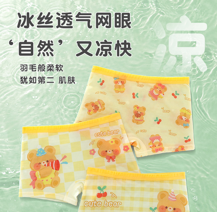 女の子の夏の薄いアイスシルクメッシュボクサーブリーフ子供の小さな女の子のための 7A 抗菌通気性ボクサーブリーフ