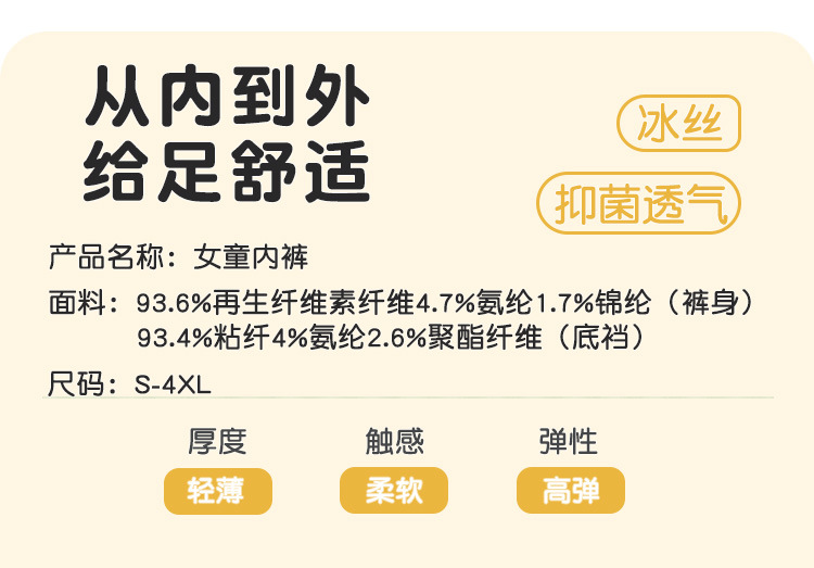 【雲感パンツ】ポリ乳酸エコシルク 涼しい夏用薄手女児肌着 子供用四隅三角ボクサーブリーフ